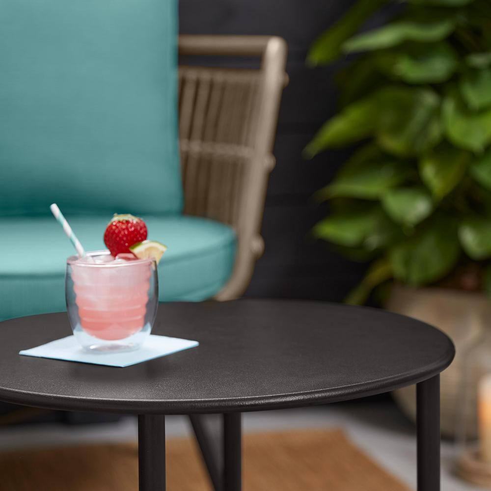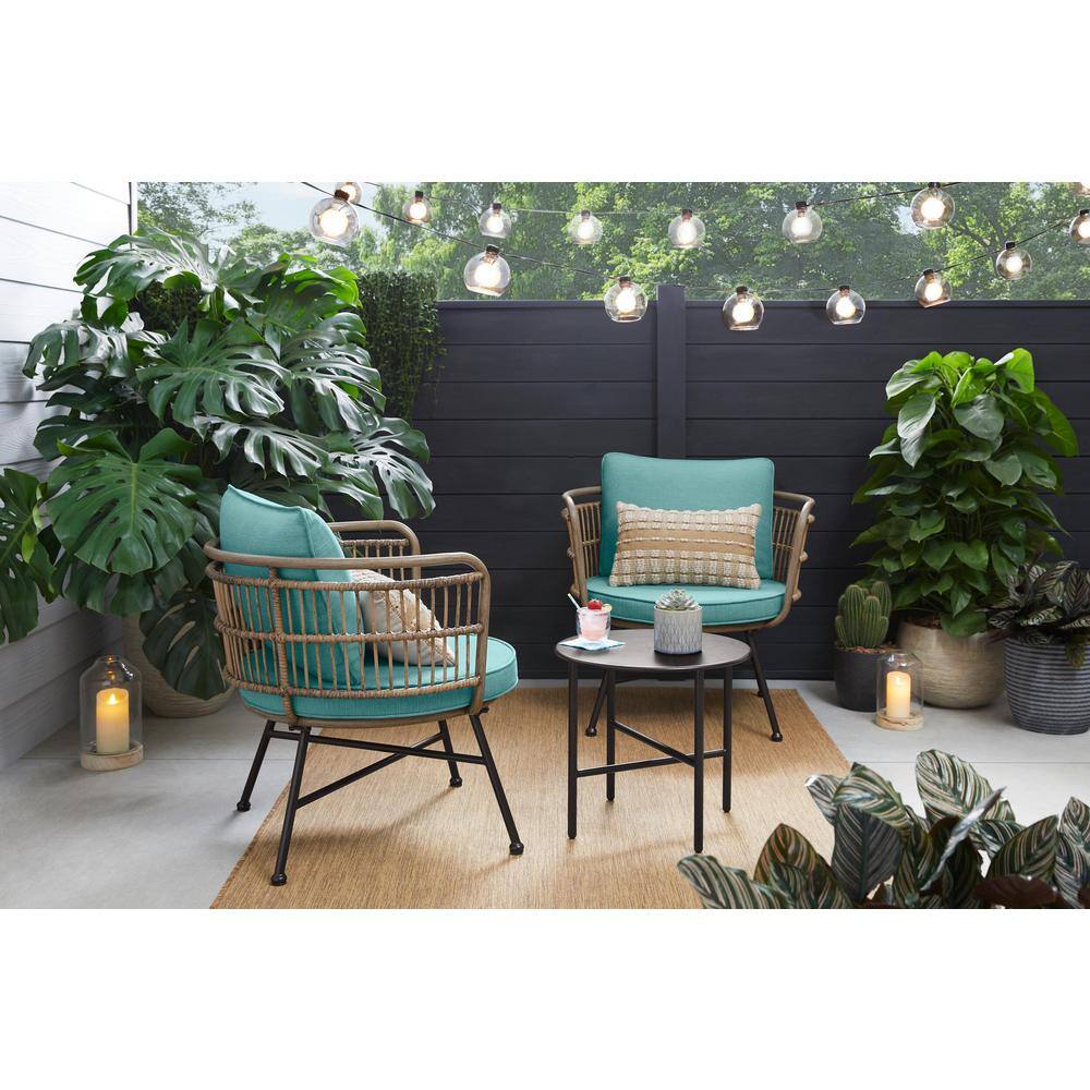 Stylewell Shiloh Valley 3-Piece Black Steel Outdoor Bistro Set with Aloe Cushions