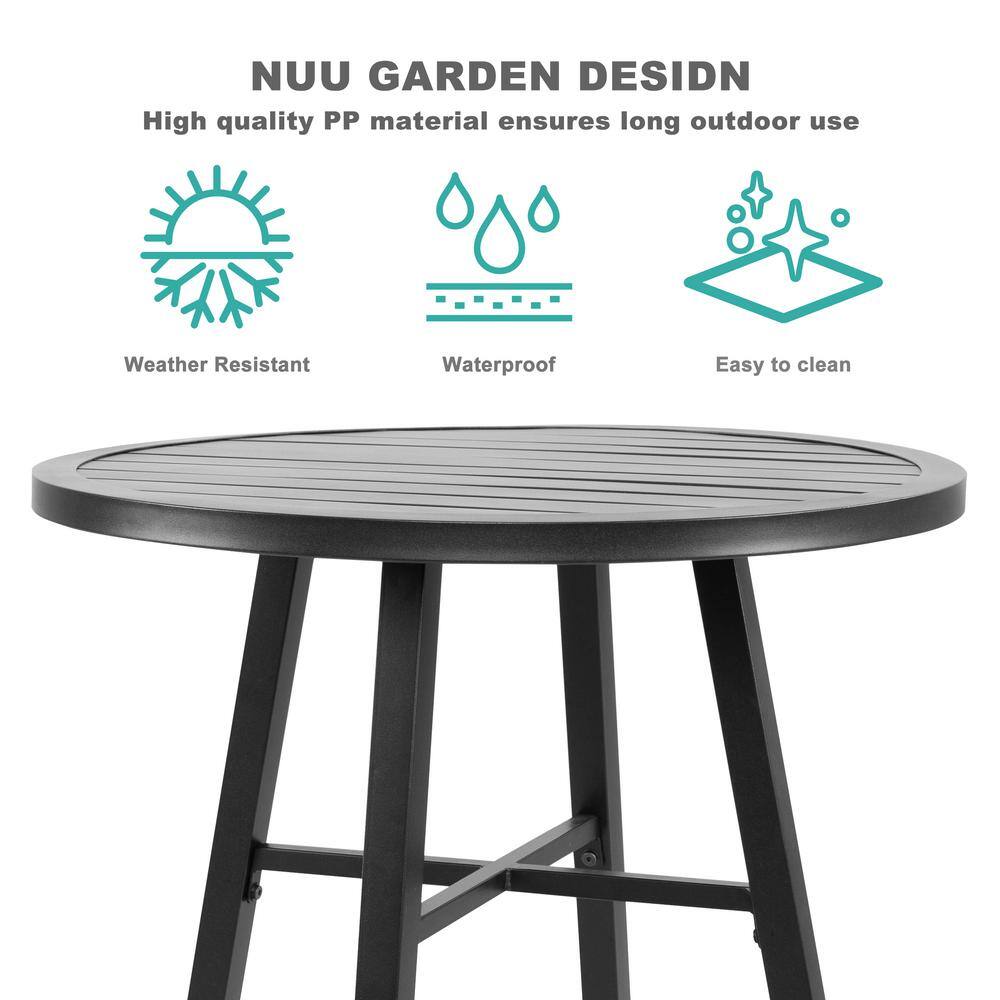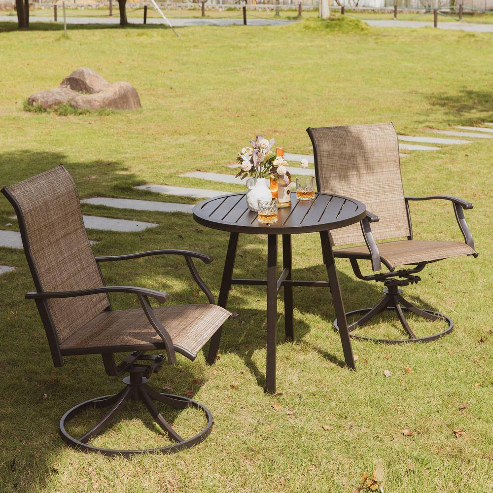 Nuu Garden 3-Piece Steel Round Outdoor Patio Bistro Set in Brown