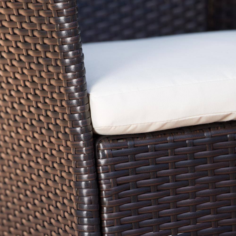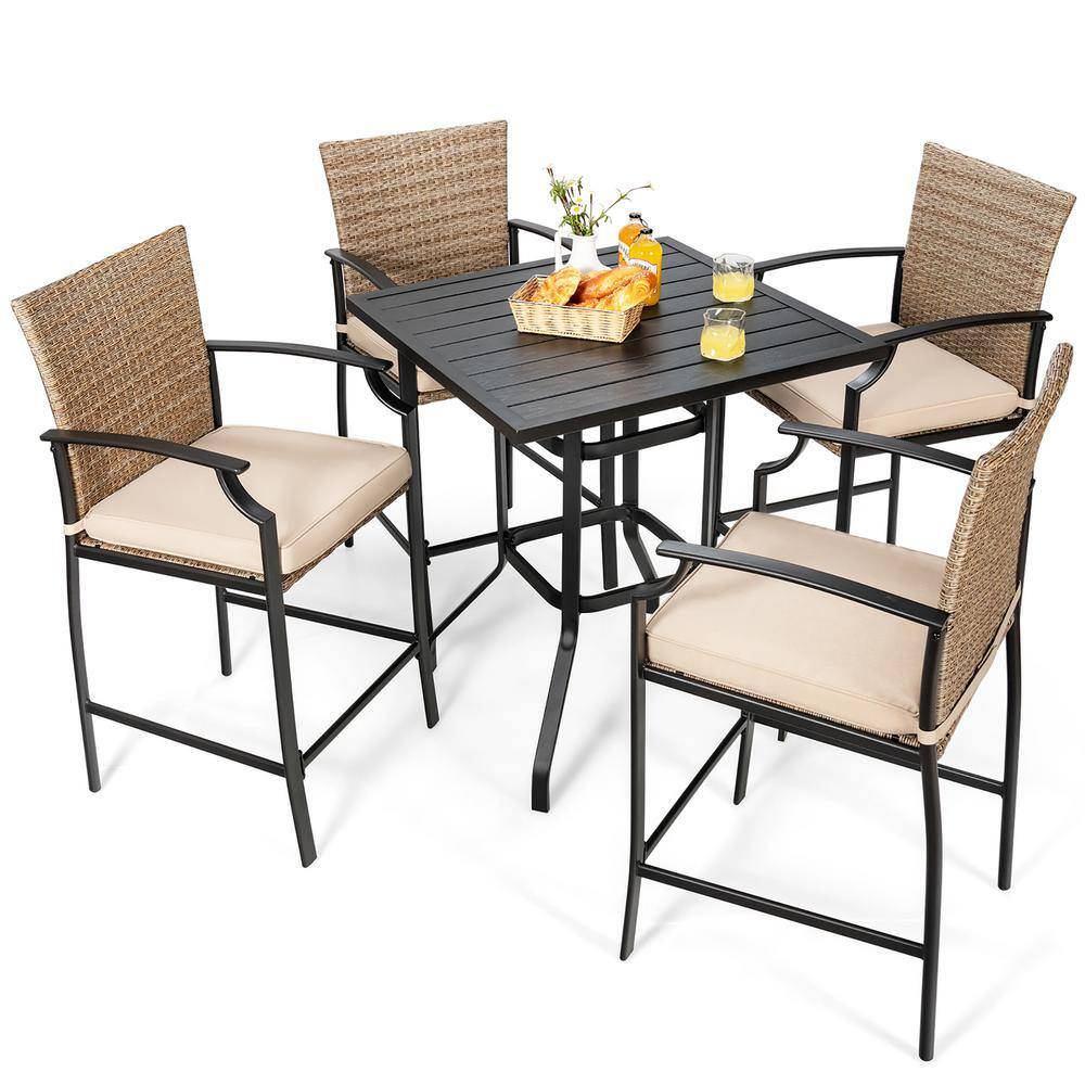 Costway 5-Piece Wicker Square 37 in. Outdoor Bistro Set Rattan Bar Stool Table Set with Beige Cushions