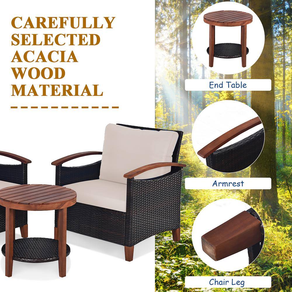 Costway 3-Piece Wicker Round Outdoor Bistro Set with Beige Cushions