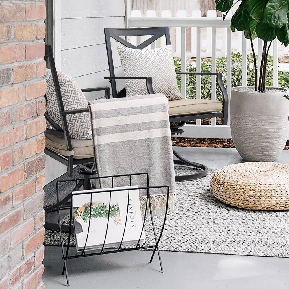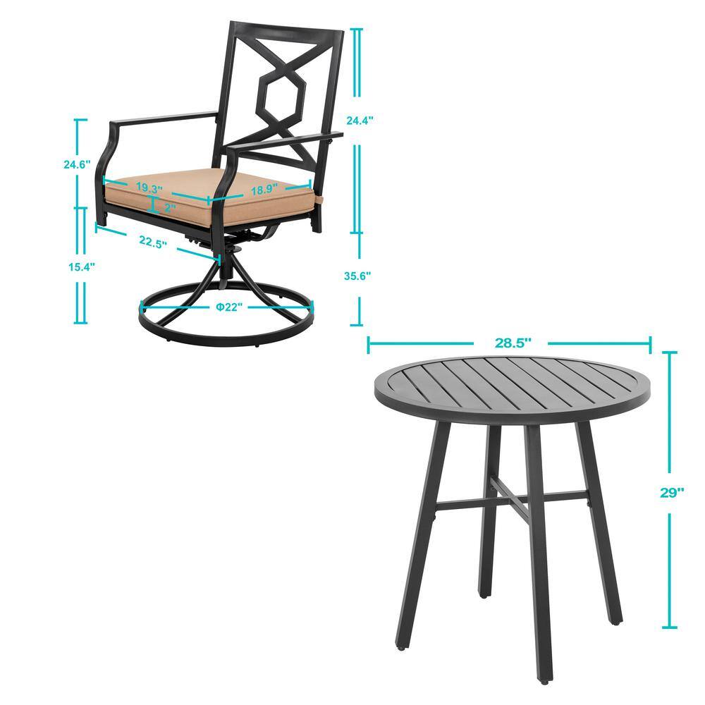 Nuu Garden 3-Piece Swivel Metal Outdoor Bistro Set Patio Furniture Balcony Porch Chair with Beige Cushions