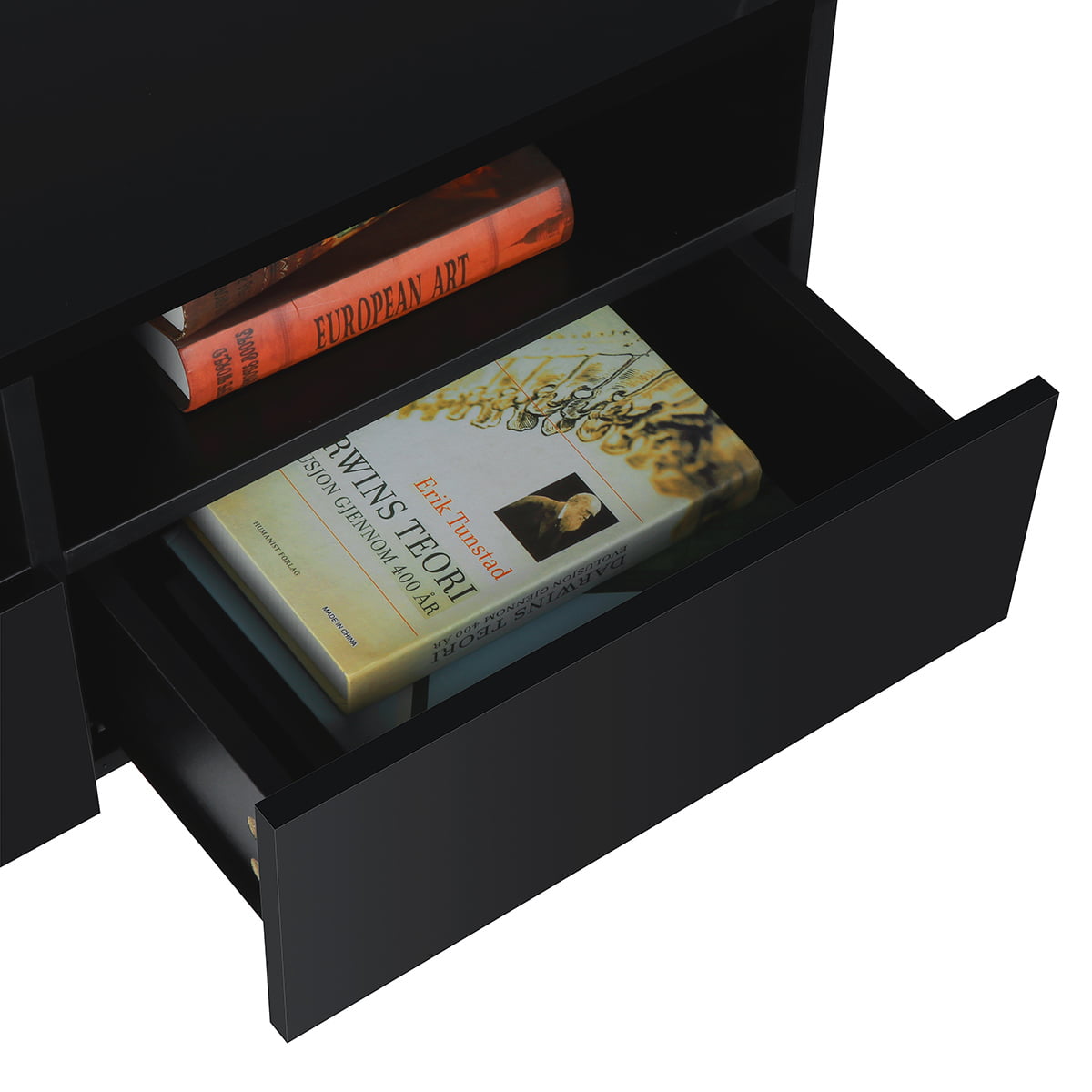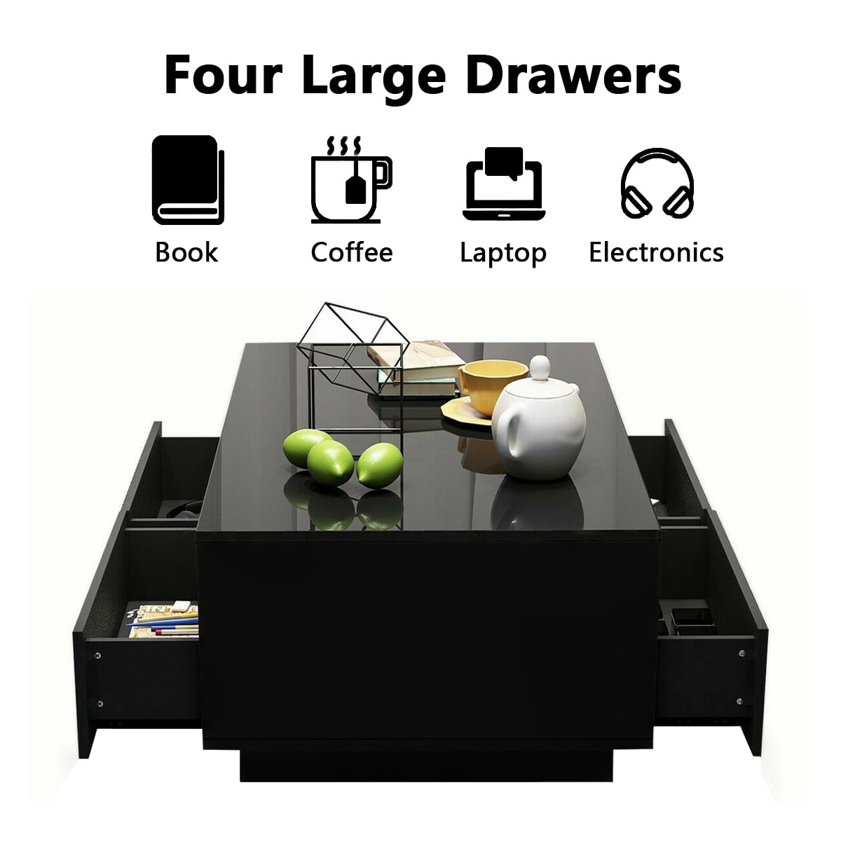 High Gloss Coffee Table LED Coffee Centre Table with Storage for Living Room. Black