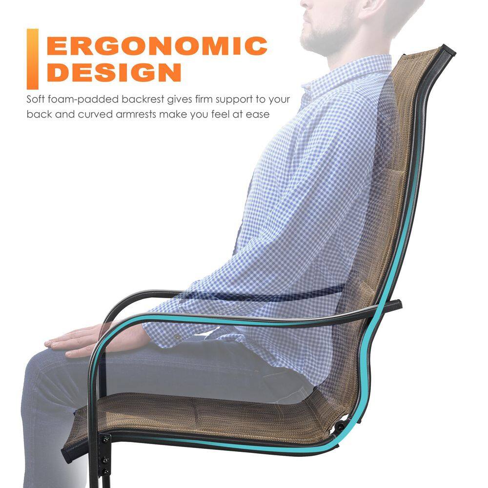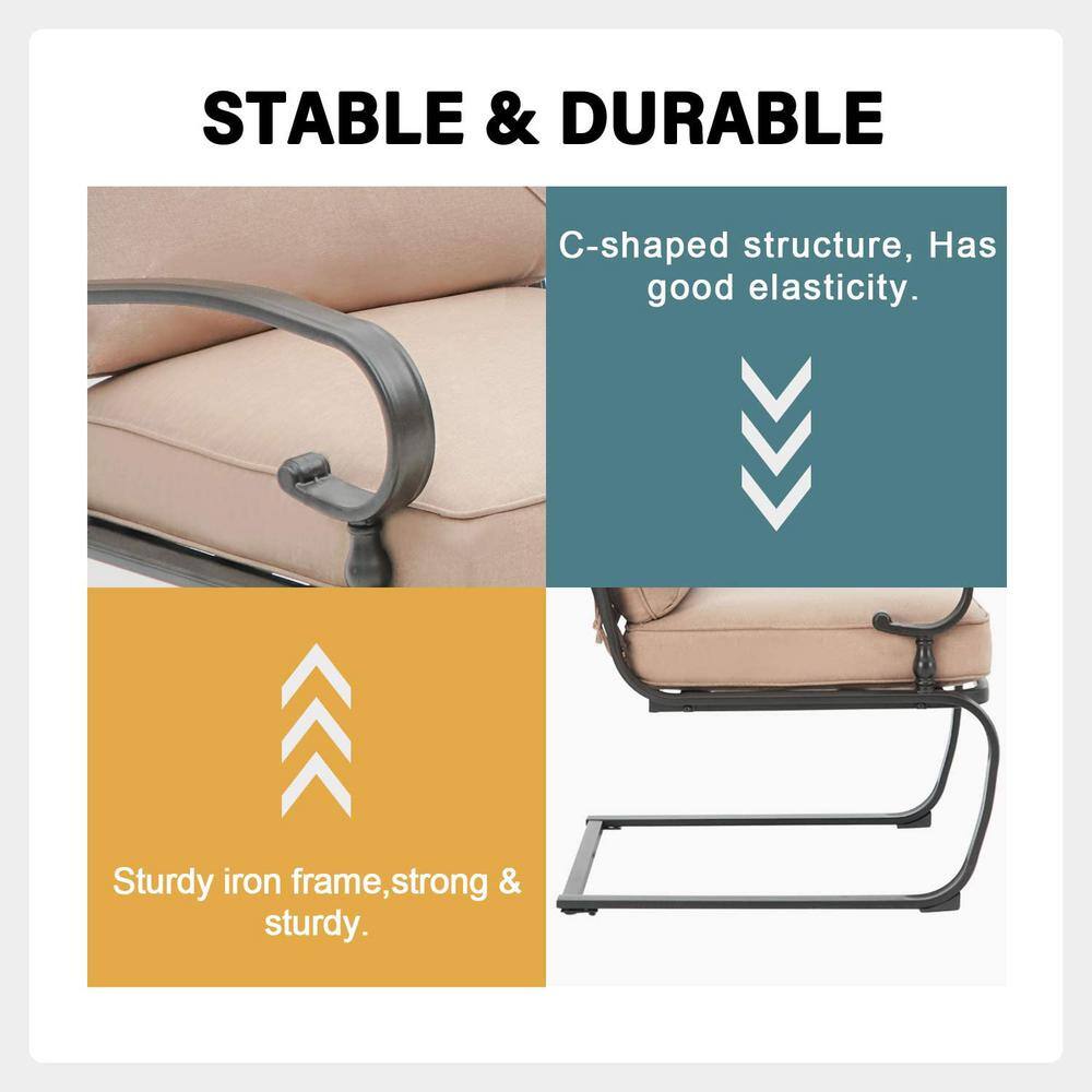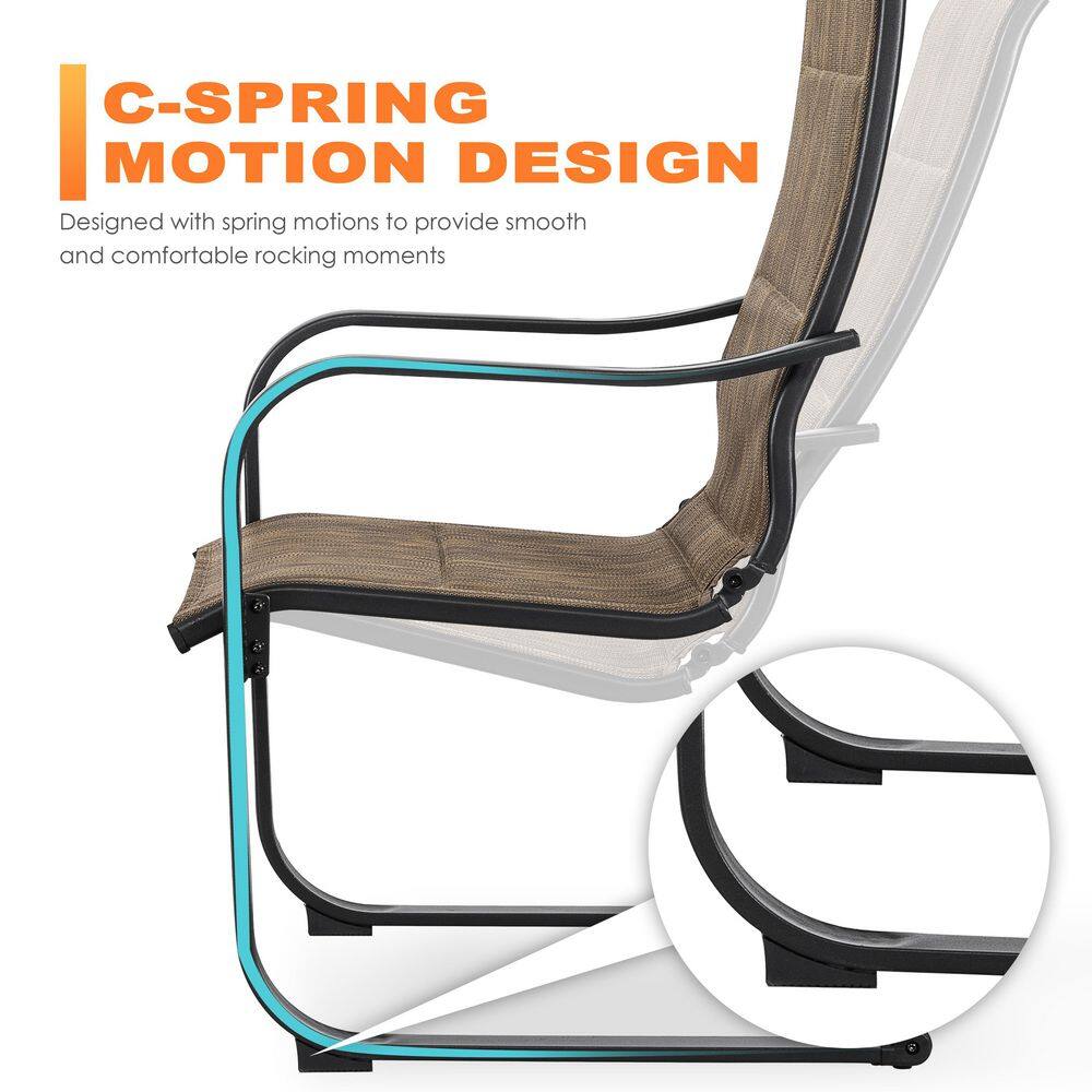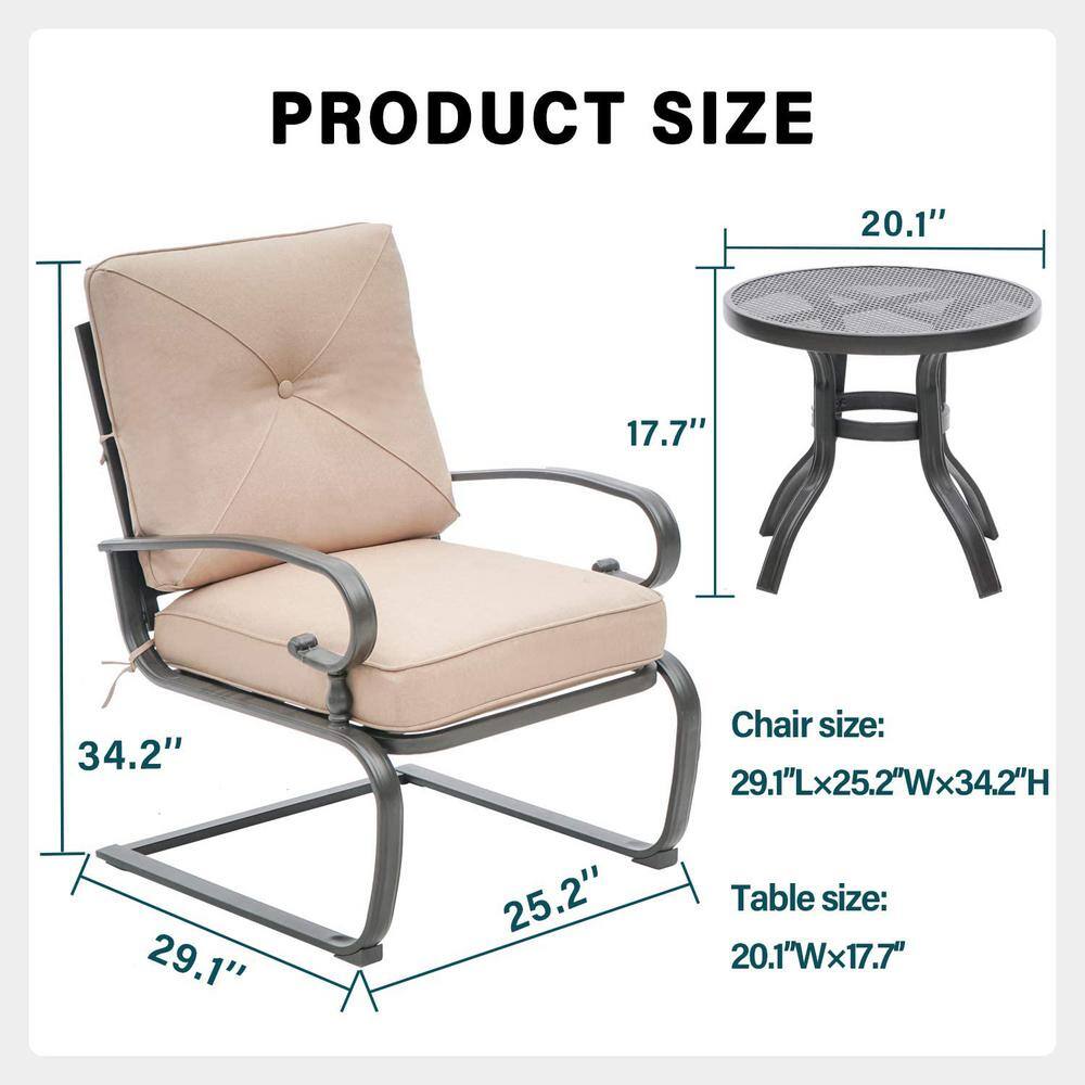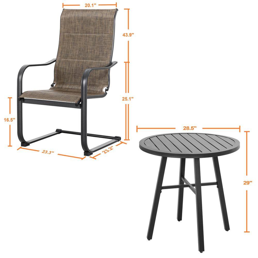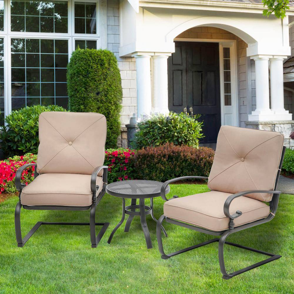 Suncrown 3-Piece Spring Metal Outdoor Bistro Set with Brown Cushions