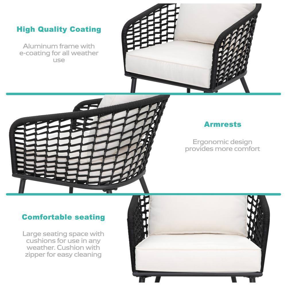 Nuu Garden 3-Piece Aluminum Outdoor Dining Patio Bistro Set with White Cushion