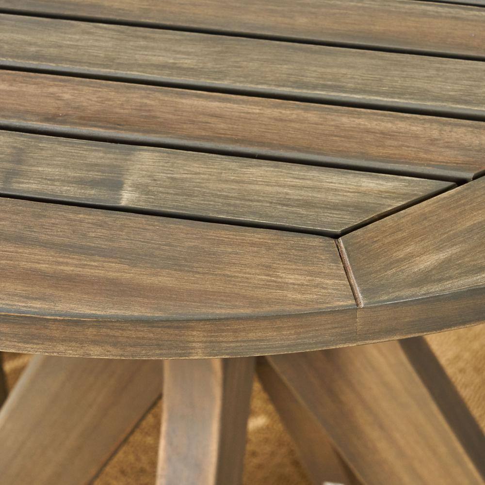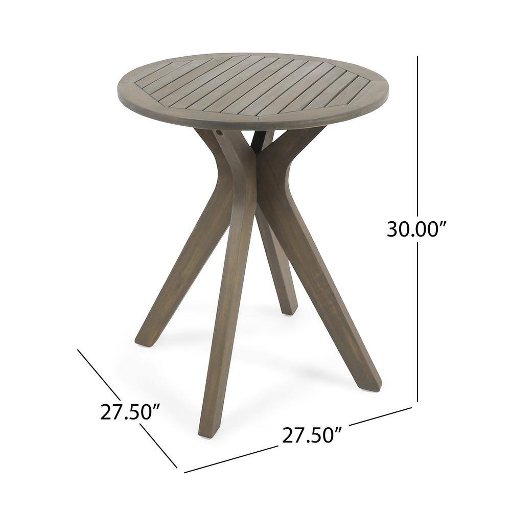 Noble House Stamford Grey 3-Piece Wood Outdoor Bistro Set with Cross-Legged Table