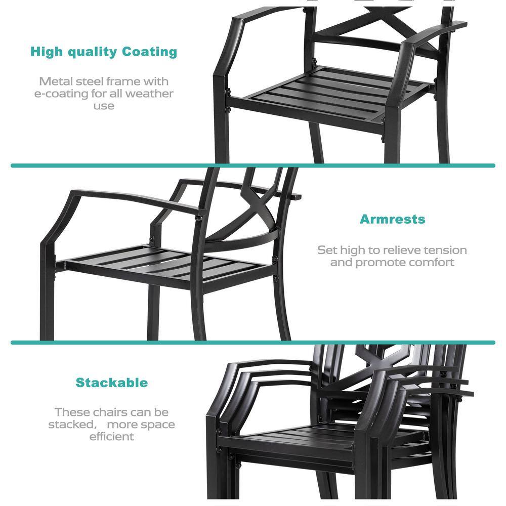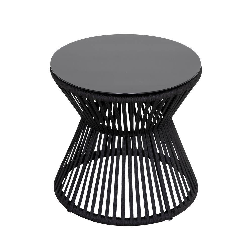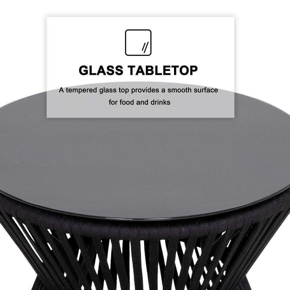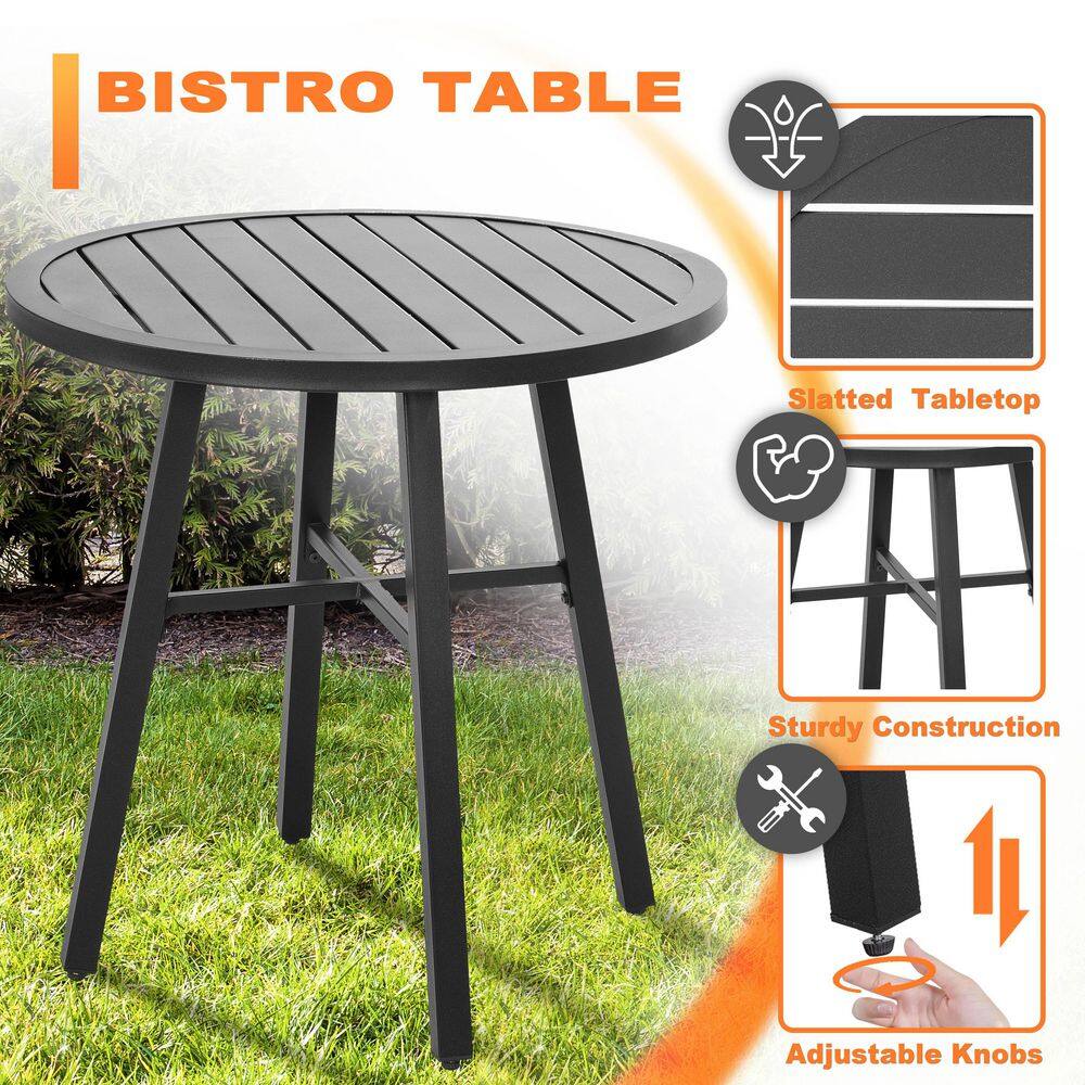 Nuu Garden 3-Piece Outdoor Patio Bistro Set With Round Coffee Table and Stackable Armchair Black