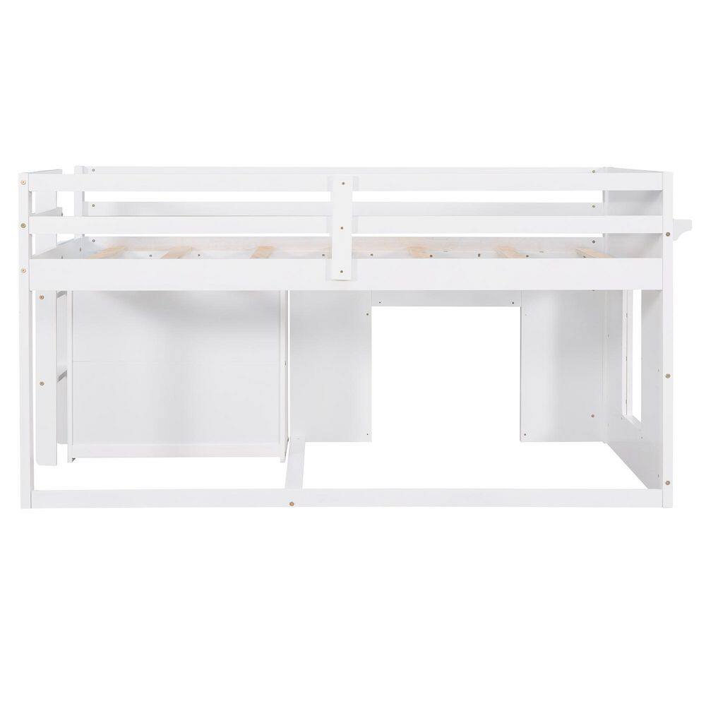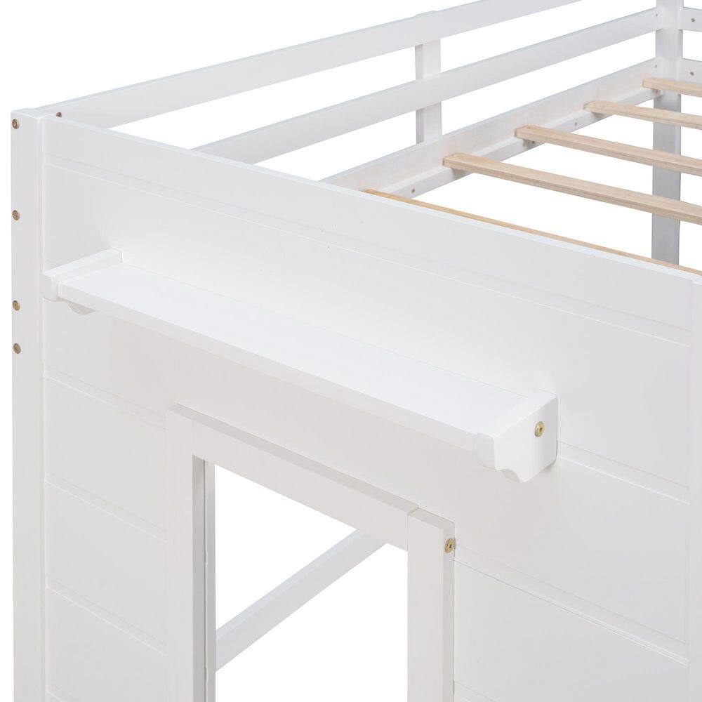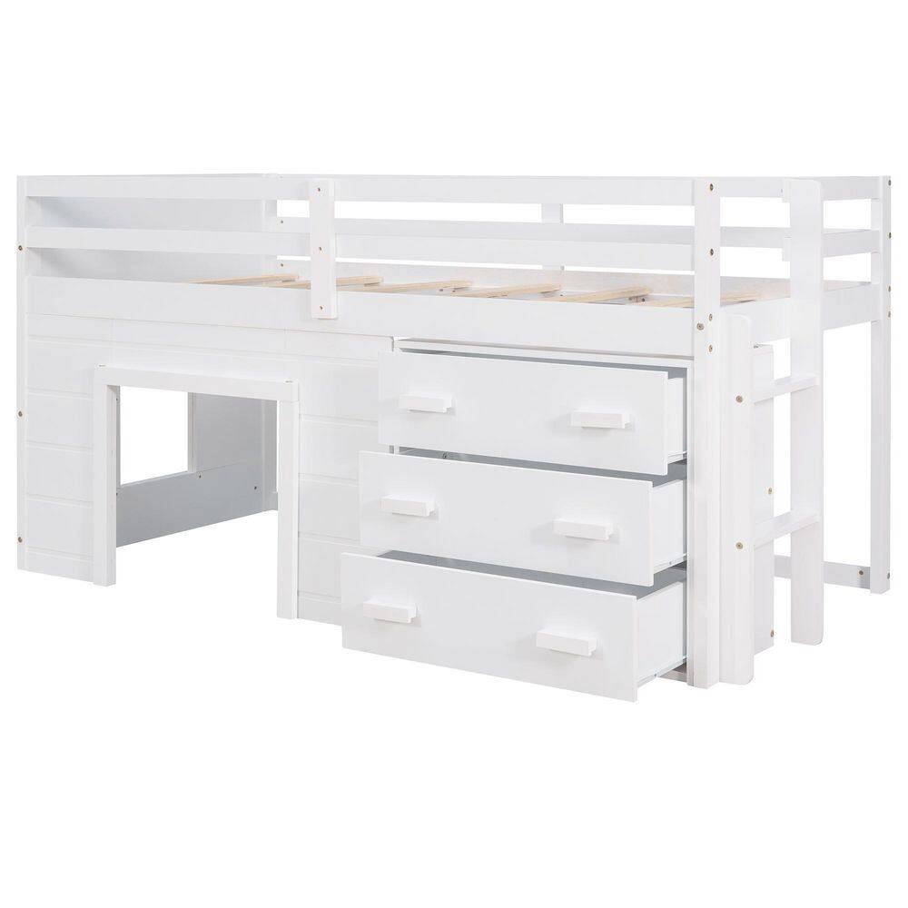 Harper & Bright Designs White Twin Size Wooden Loft Bed with Cabinet and Shelf