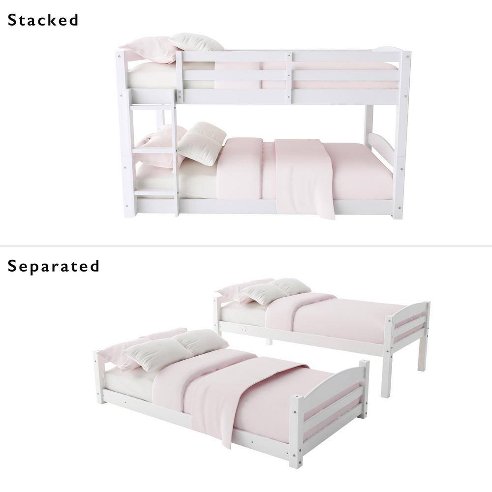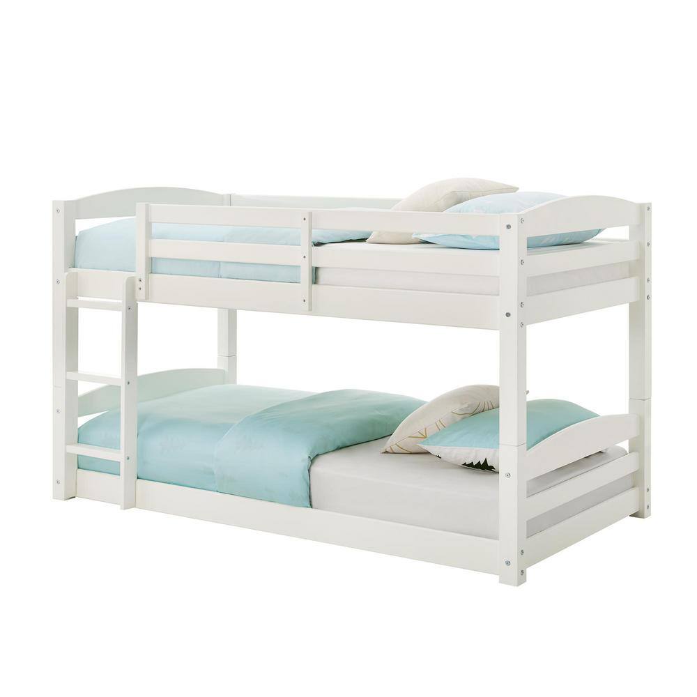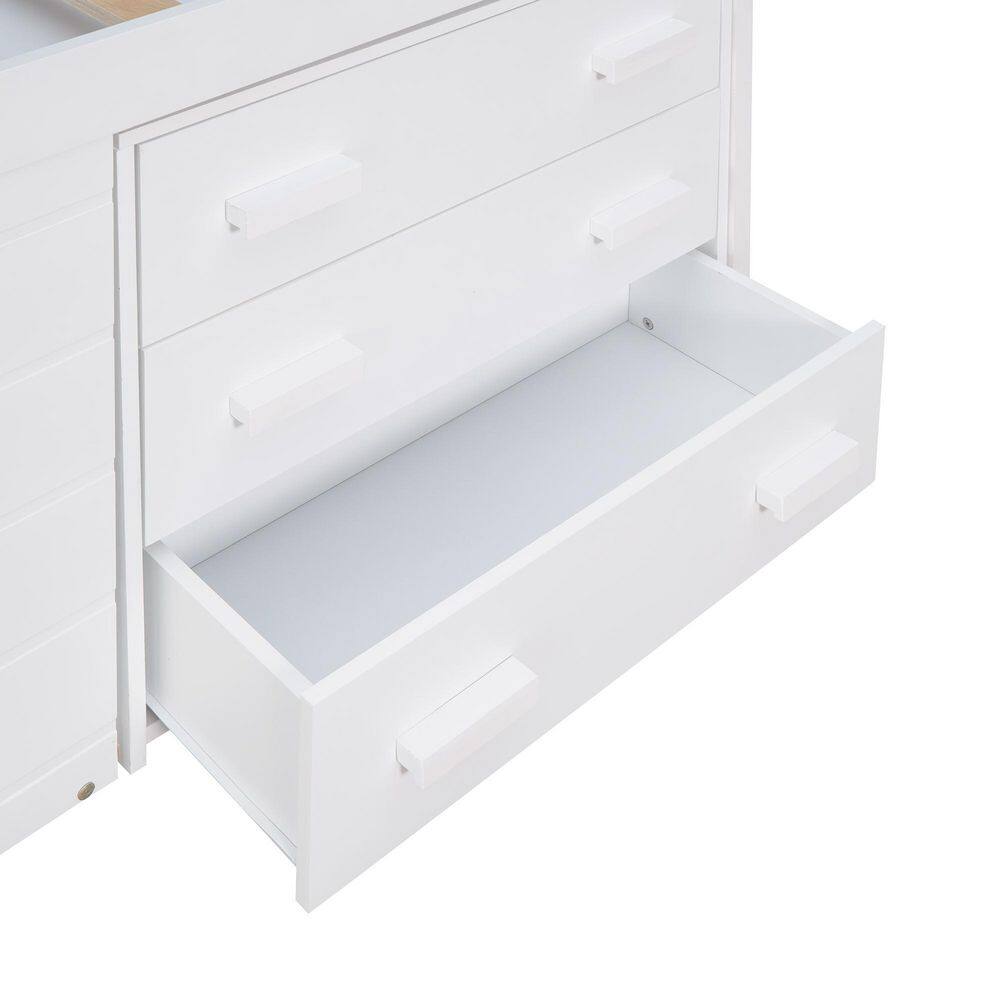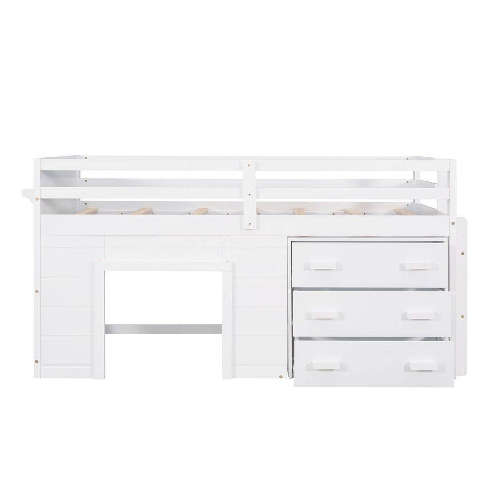 Harper & Bright Designs White Twin Size Wooden Loft Bed with Cabinet and Shelf