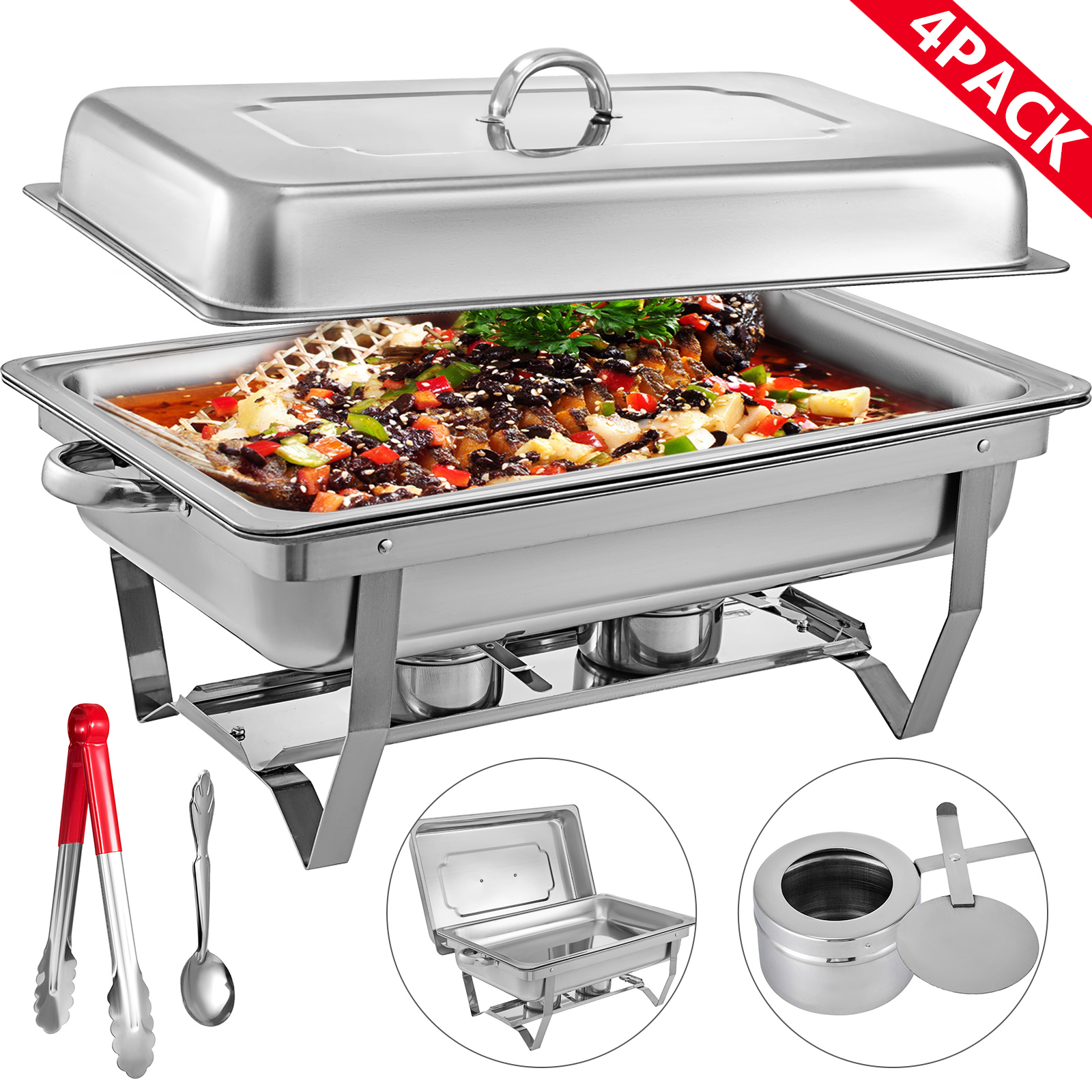 VEVOR Chafing Dish 4-Pack. 9L Stainless Steel Buffet Warmer