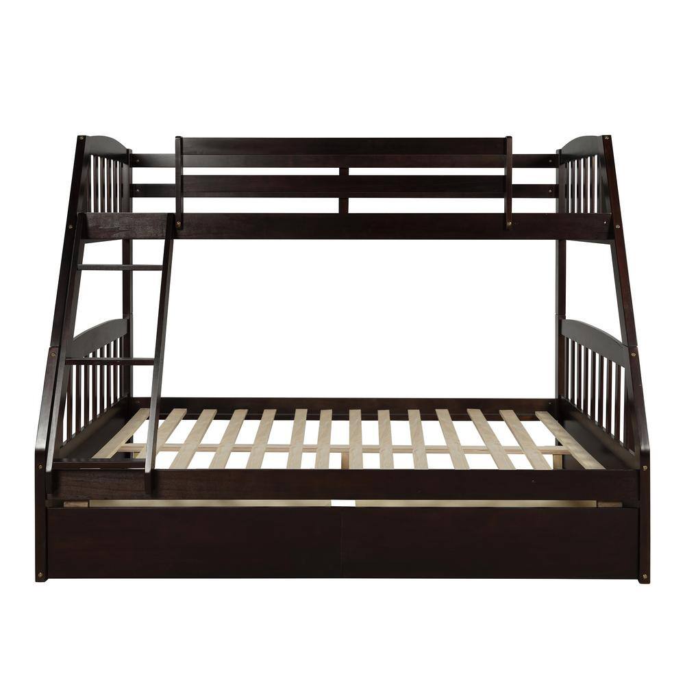 Harper & Bright Designs Espresso Twin over Full Wood Bunk Bed with 2-Drawers