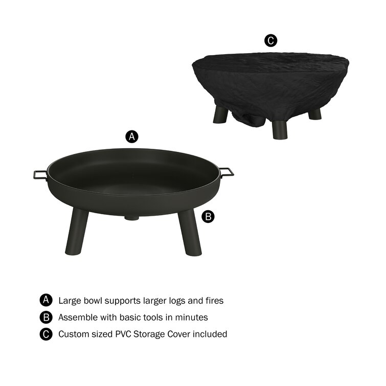 Janke 13.5” H x 27.55” W Steel Wood Burning Outdoor Fire Pit