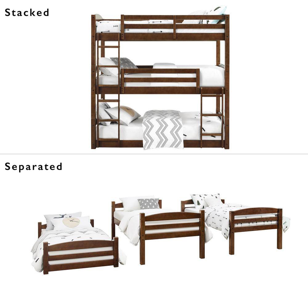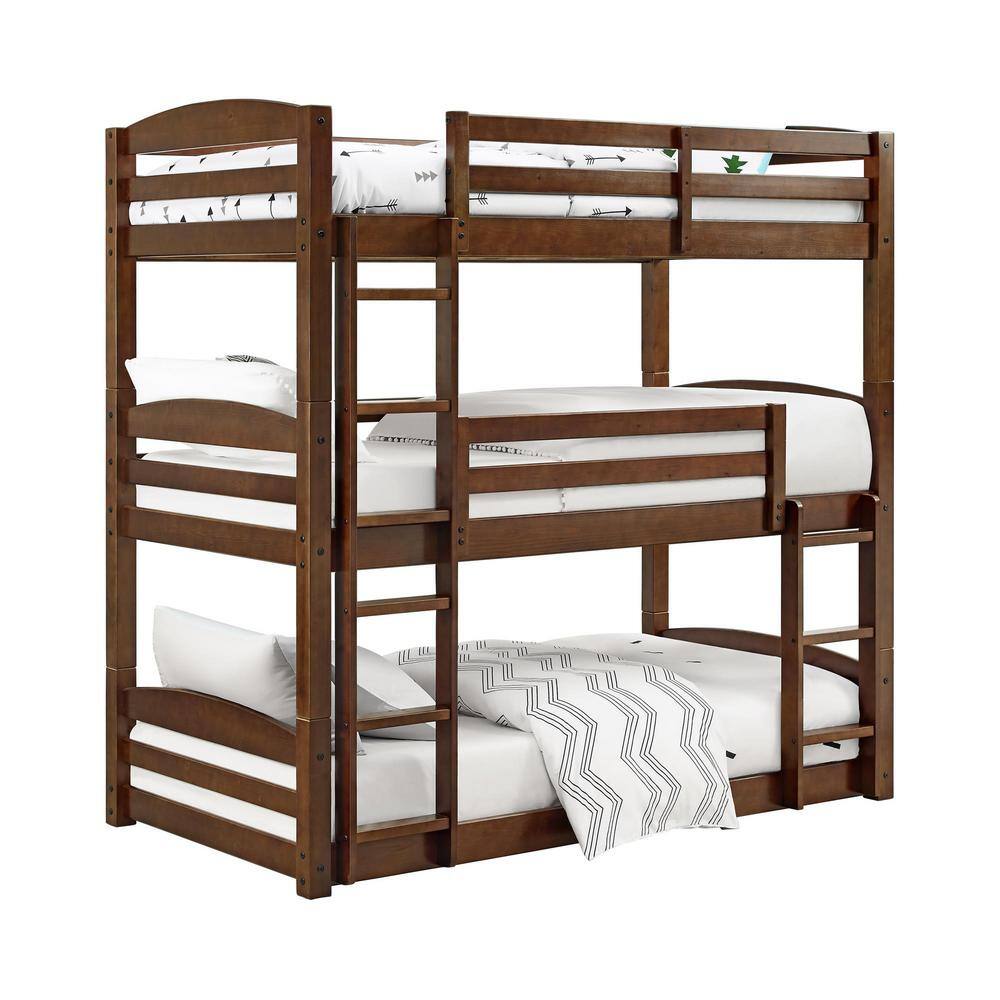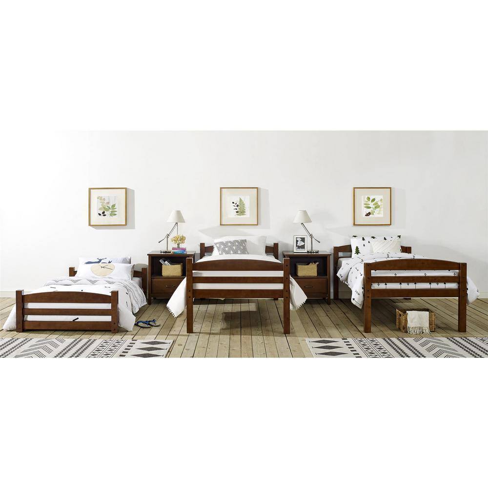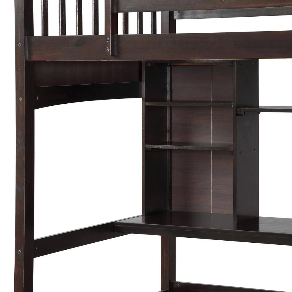 Harper & Bright Designs Espresso Wood Twin Size Loft Bed with Storage Shelves and Desk