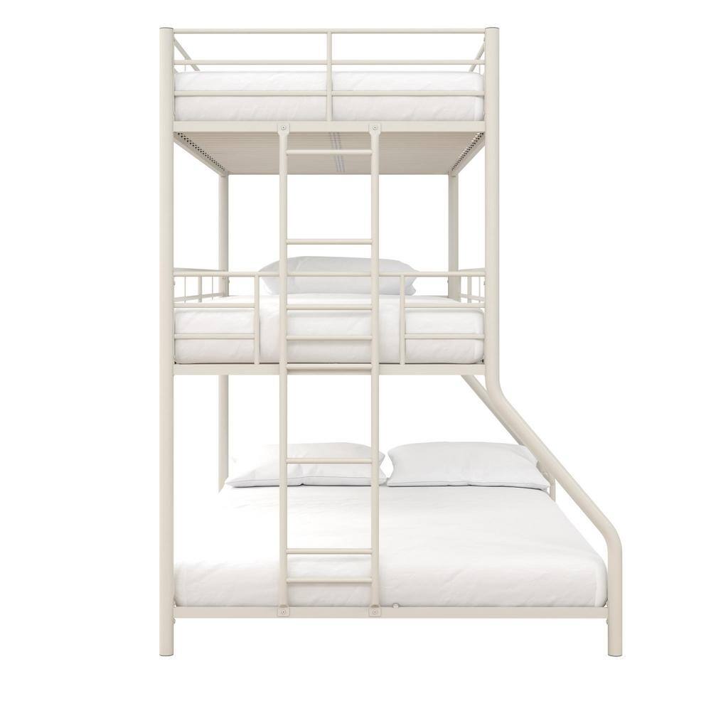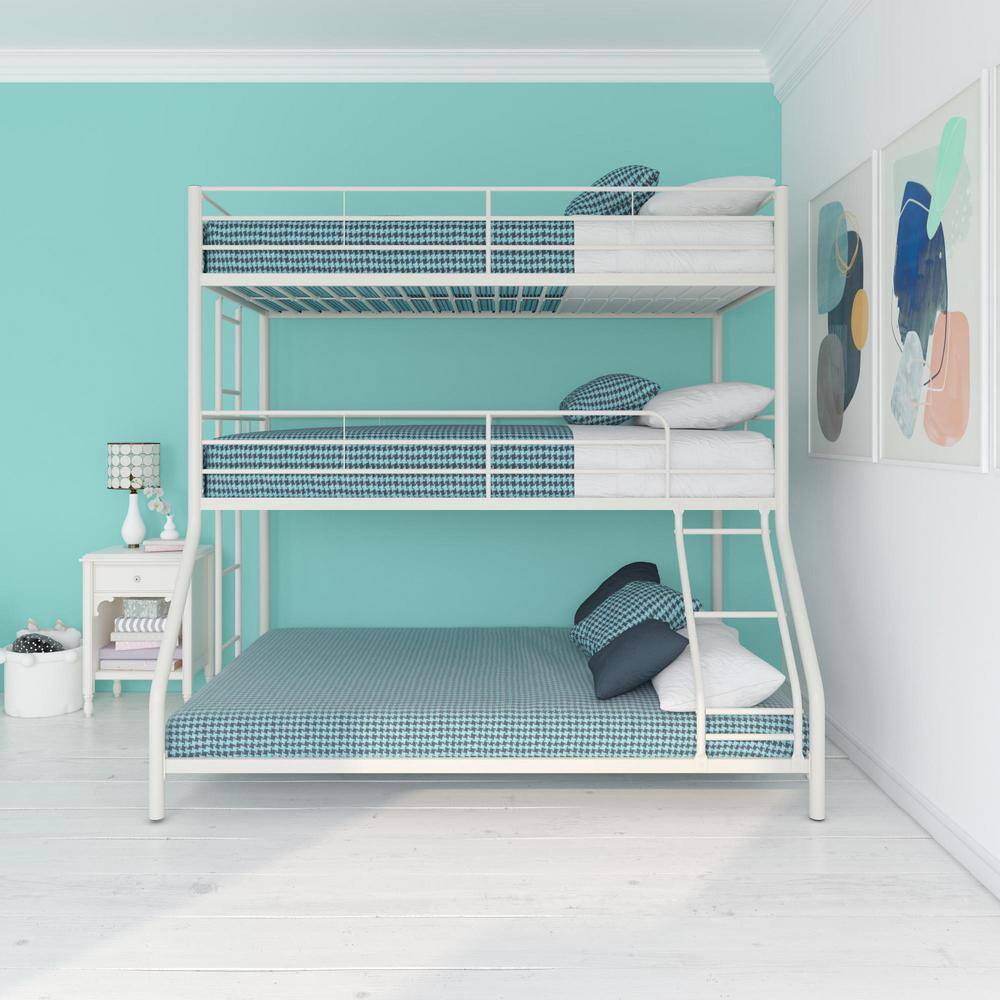 Harper & Bright Designs White Full Over Full Metal Low Bunk Bed with Ladder