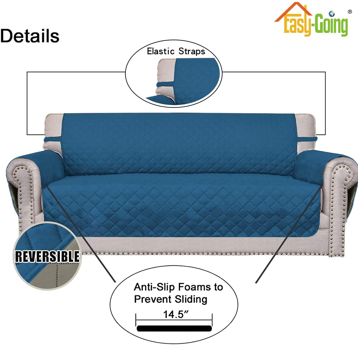 Easy-Going Reversible Sofa Slipcover Water Resistant Couch Cover. Sofa Size. Peacock Blue/Beige