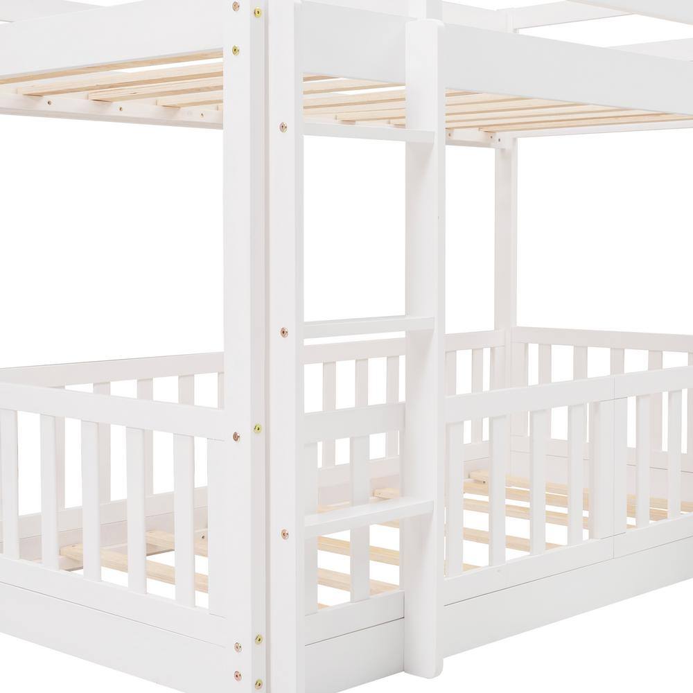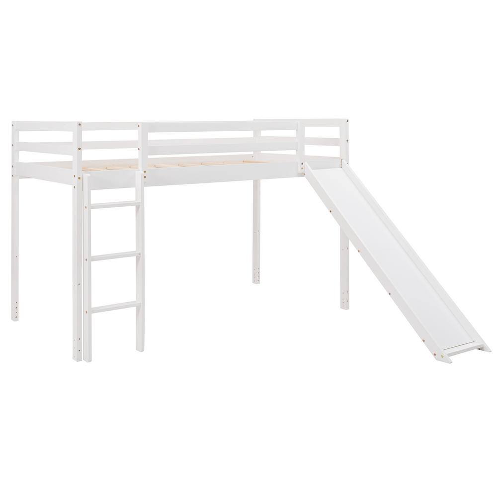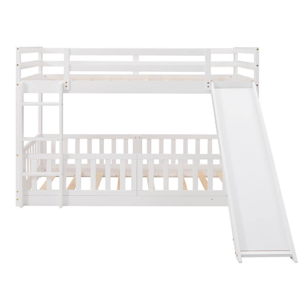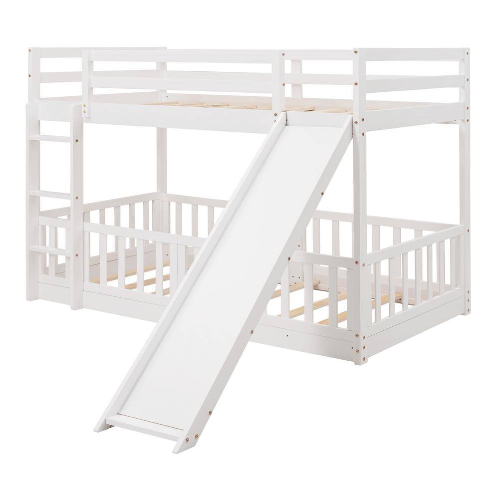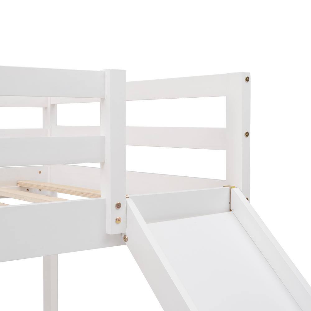 Harper & Bright Designs White Twin Over Twin Wood Bunk Bed with Slide and Ladder
