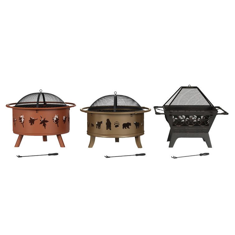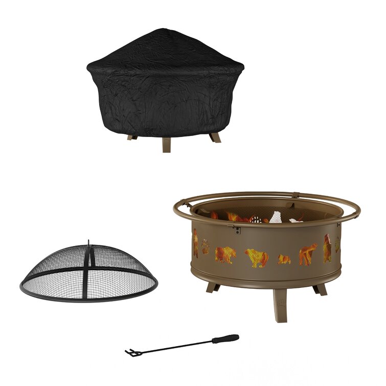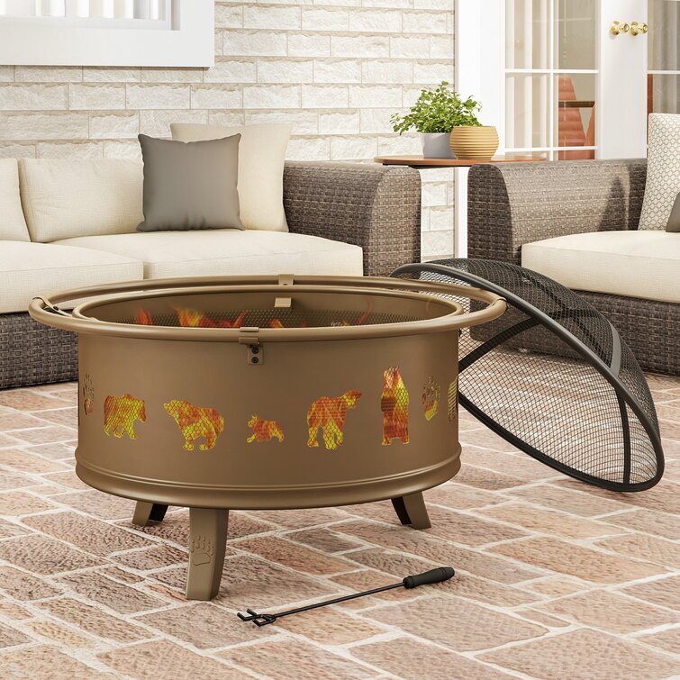 Janson 25” H x 32” W Steel Wood Burning Outdoor Fire Pit with Lid