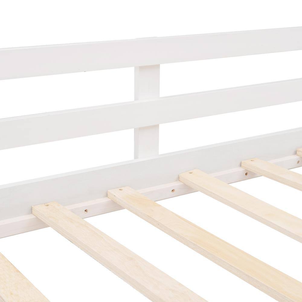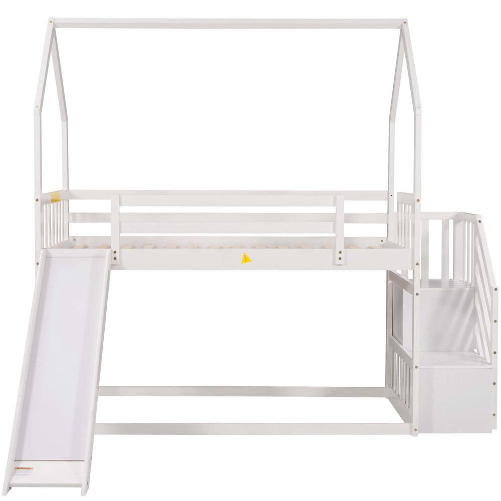 Harper & Bright Designs White Twin Over Twin Wood House Bunk Bed with Convertible Slide and Storage Staircase