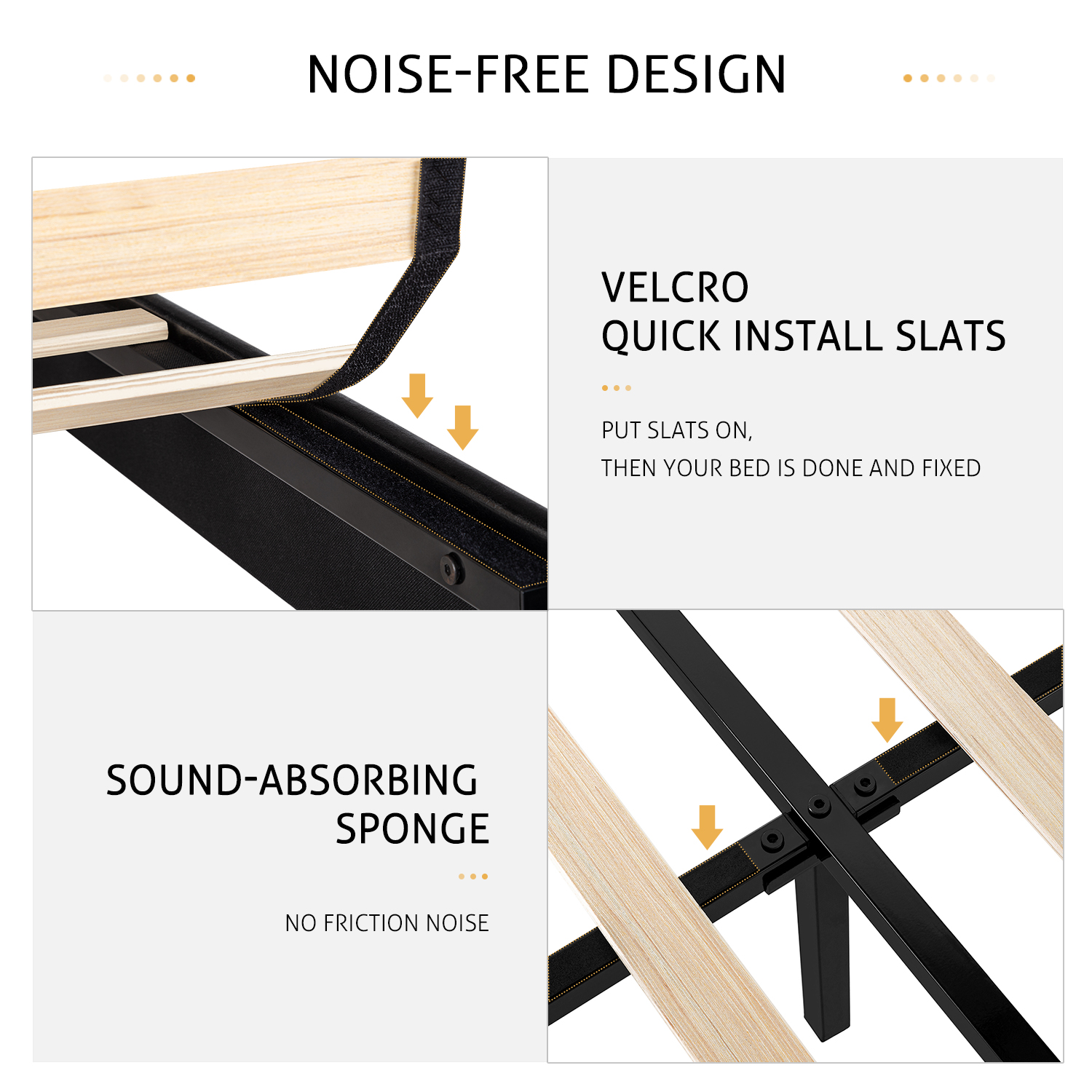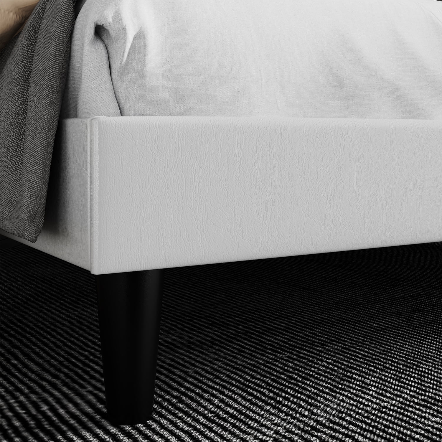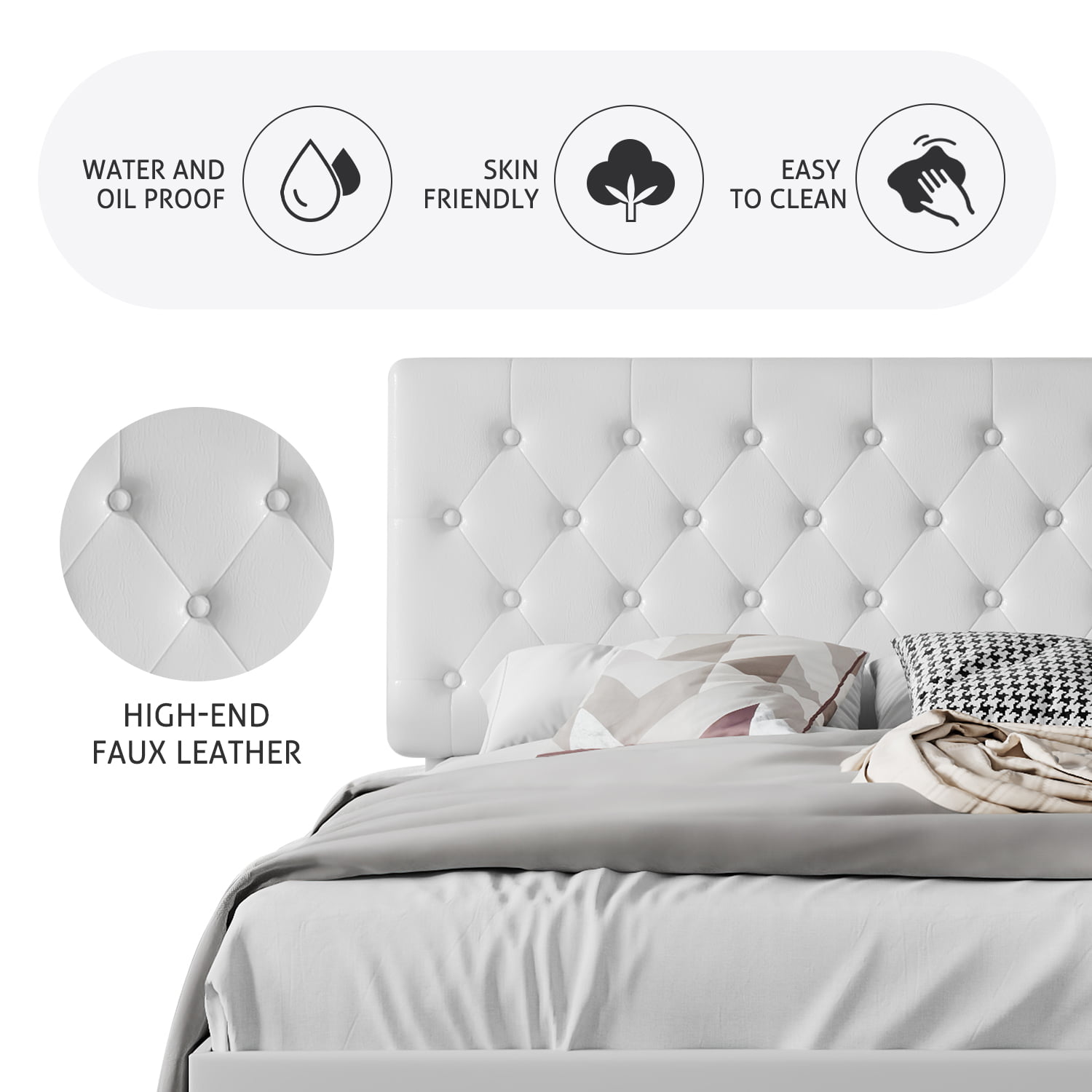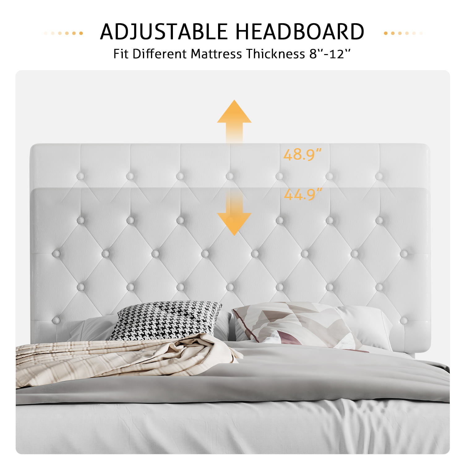 Sha Cerlin Queen Size Platform Bed Frame with Button Tufted Headboard. Faux Leather Upholstered Mattress Foundation. White