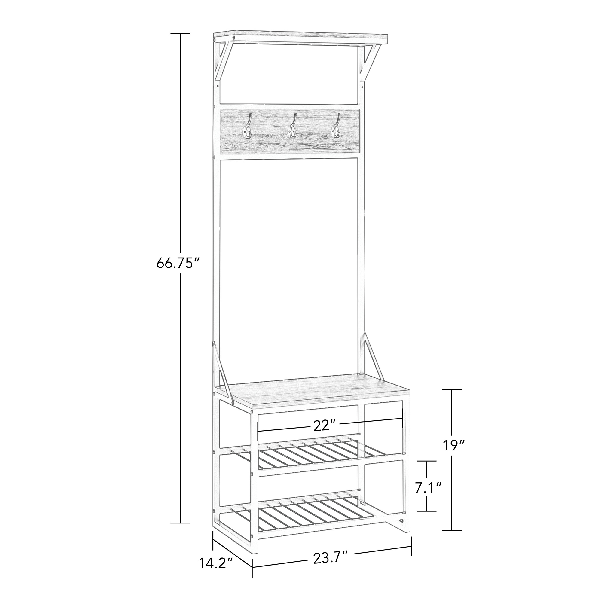 RiverRidge Home Afton Metal Frame Hall Tree with Seat. 3 Open Shelves. and 3 Hooks in Dark Weathered Wood