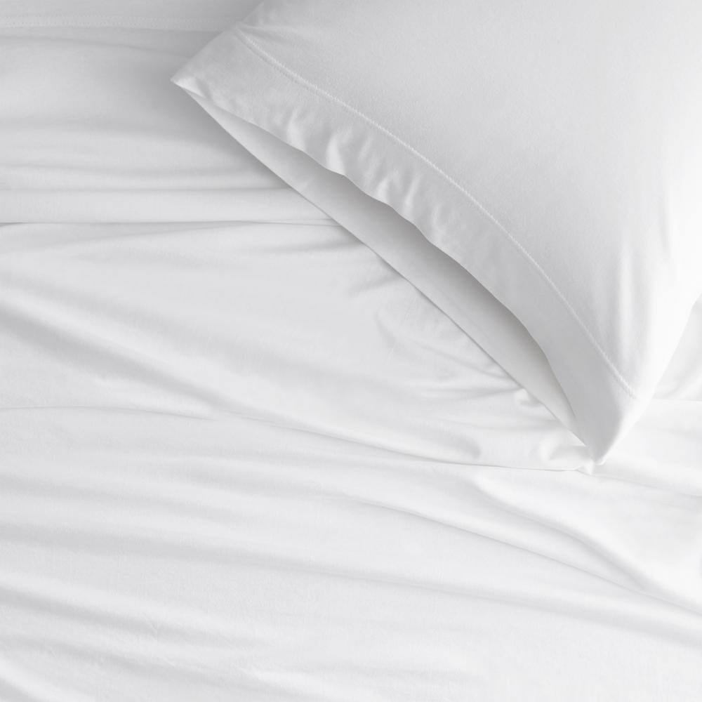 The Company Store Company Cotton 4-Piece Cloud Blue Solid Cotton Jersey Knit Queen Sheet Set - Cloud Blue