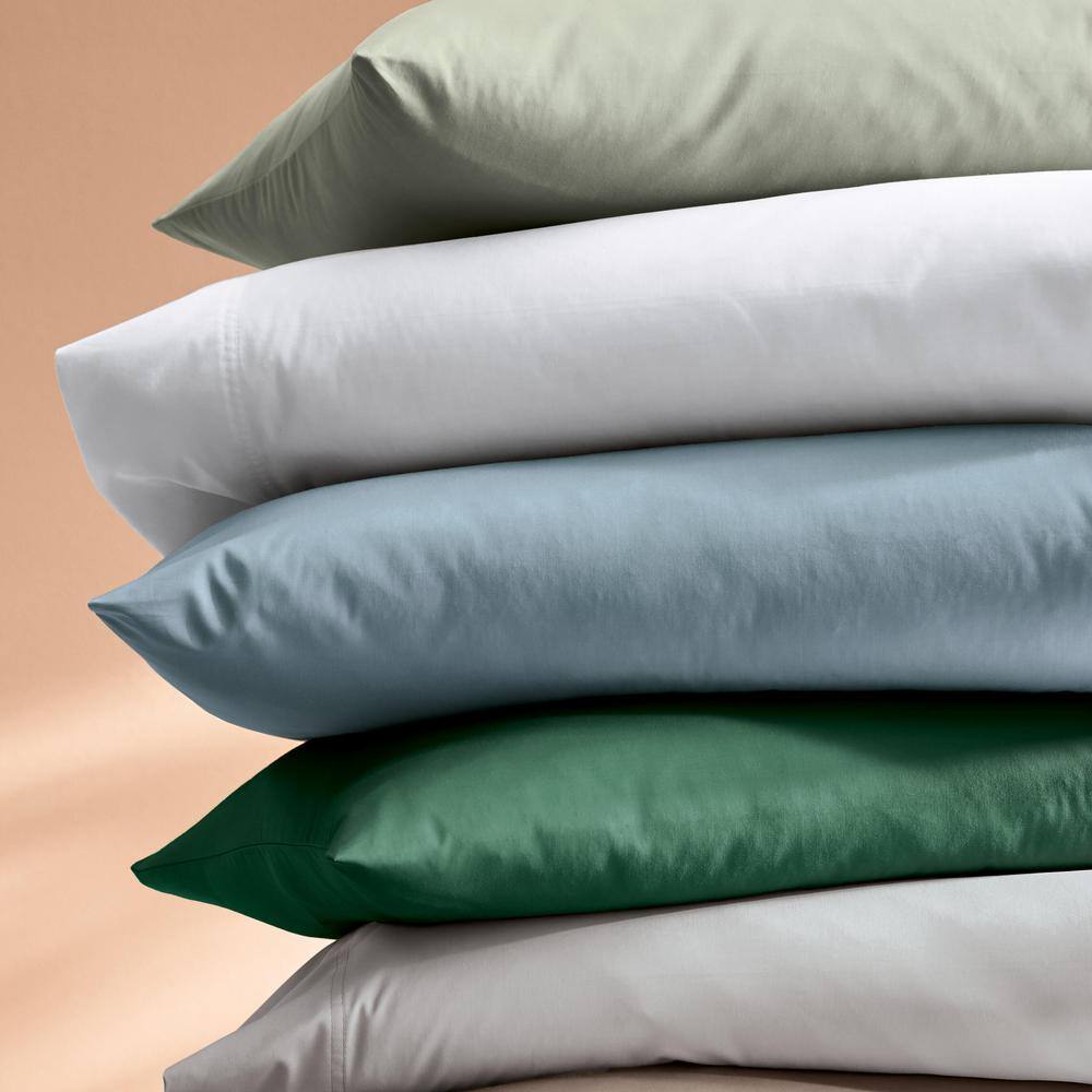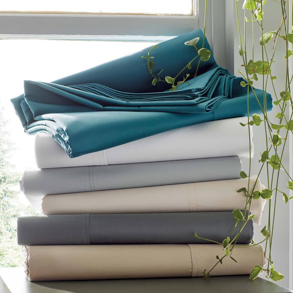 The Company Store Company Cotton 4-Piece White Solid 300-Thread Count Wrinkle-Free Sateen Queen Sheet Set - White