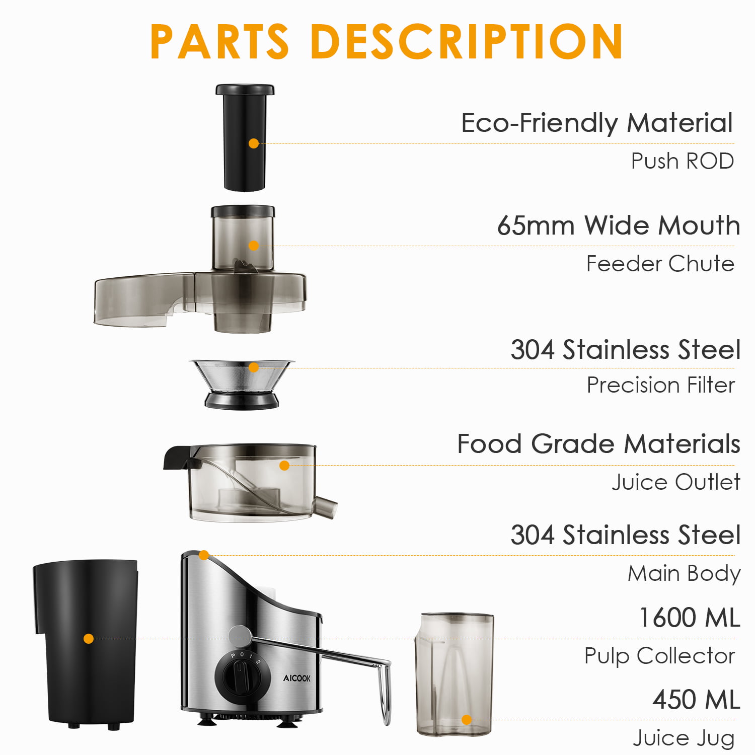 Juicer Extractor Easy Clean. 3 Speeds Control. Stainless Steel BPA Free