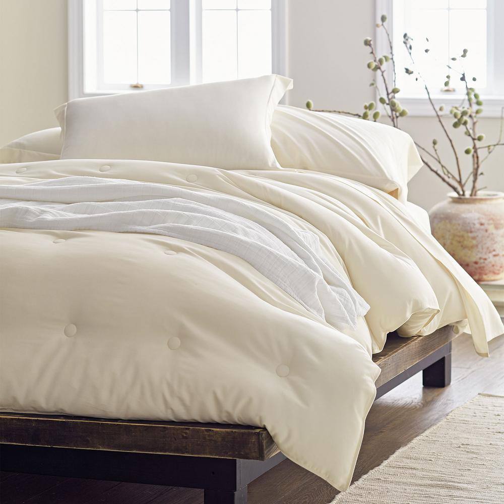 The Company Store Ivory Solid Rayon Made From Bamboo Cotton Sateen Tufted Queen Comforter - Queen/Ivory