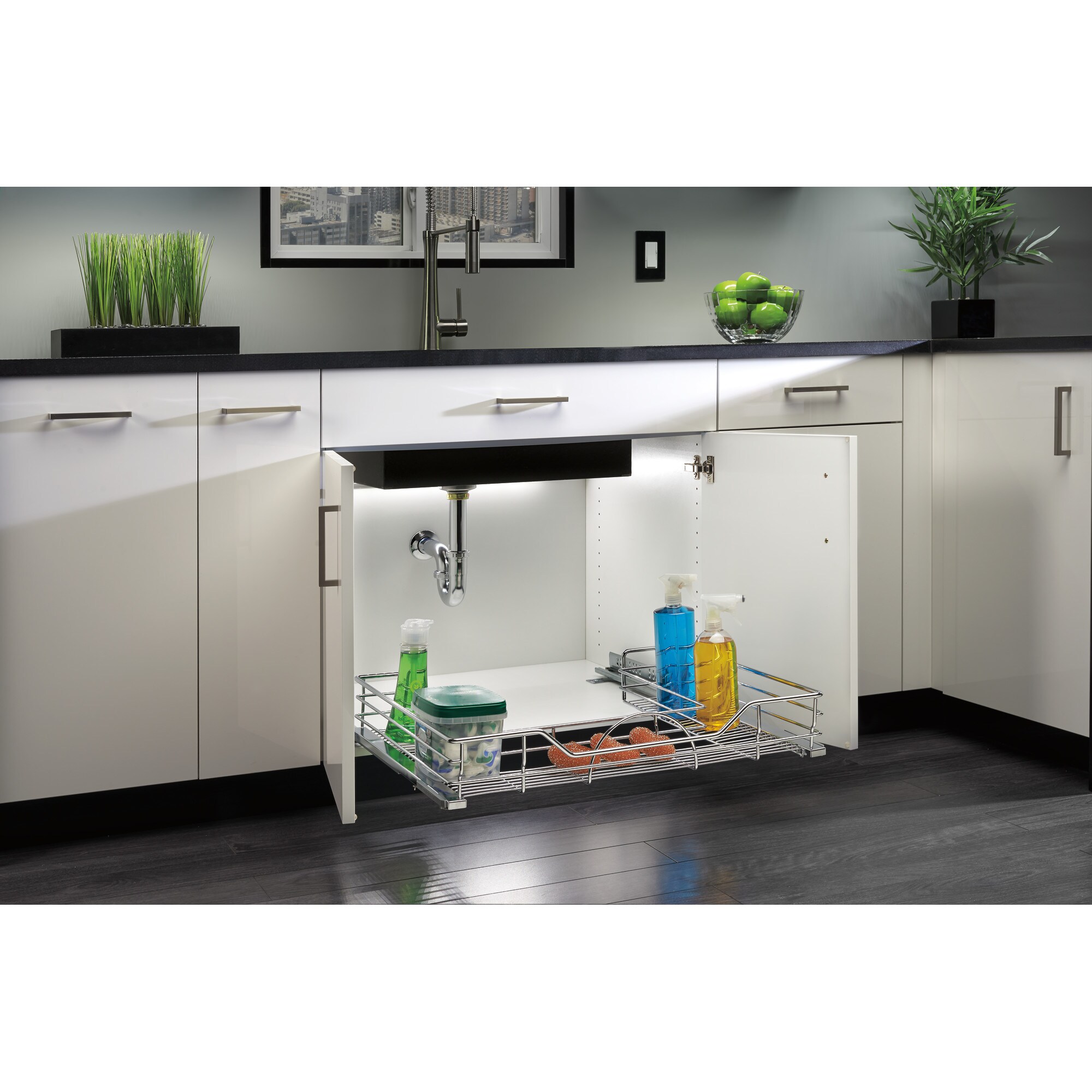 Rev-A-Shelf 29.5-in W x 5.2-in H 1-Tier Cabinet-mount Metal Soft Close Under-sink Organizer