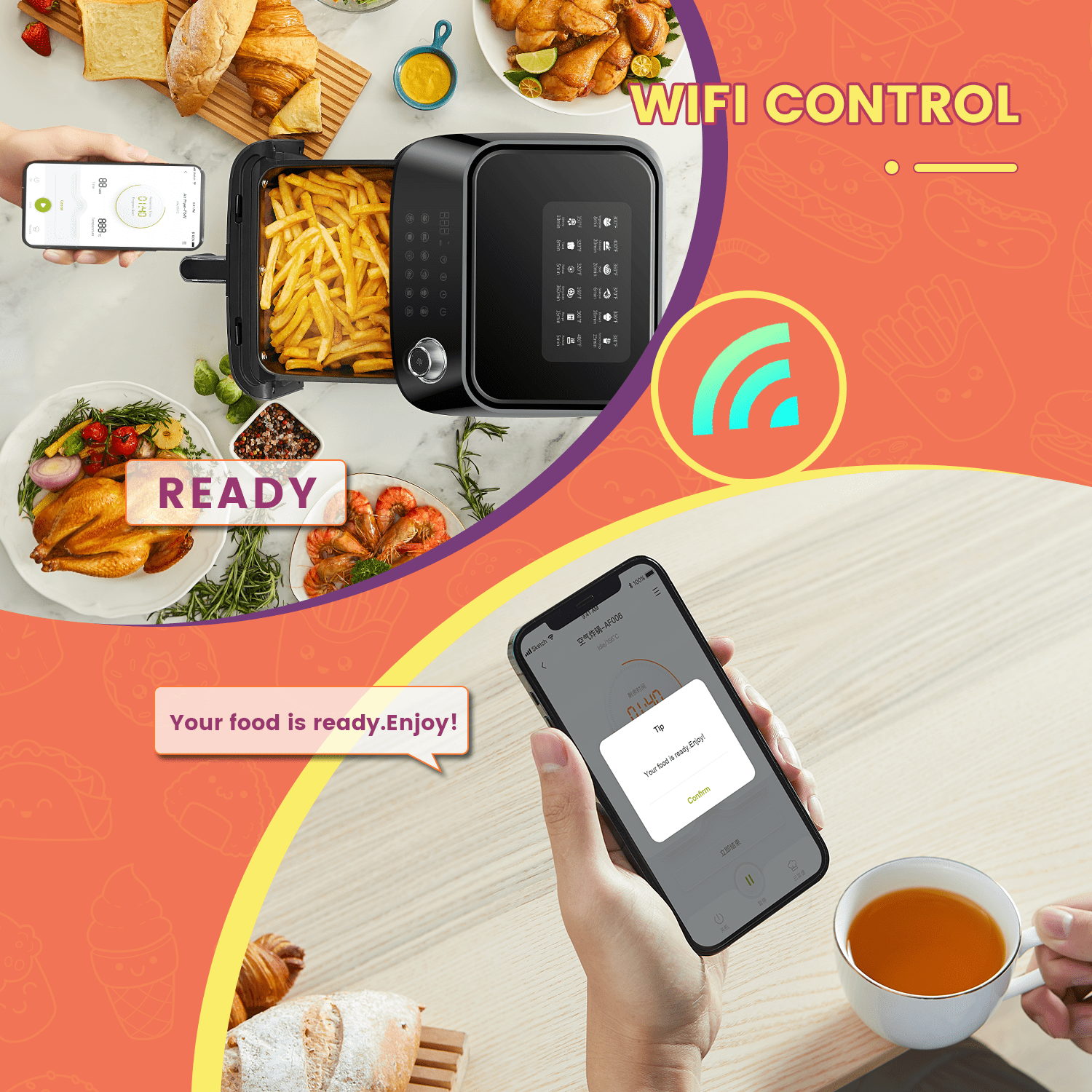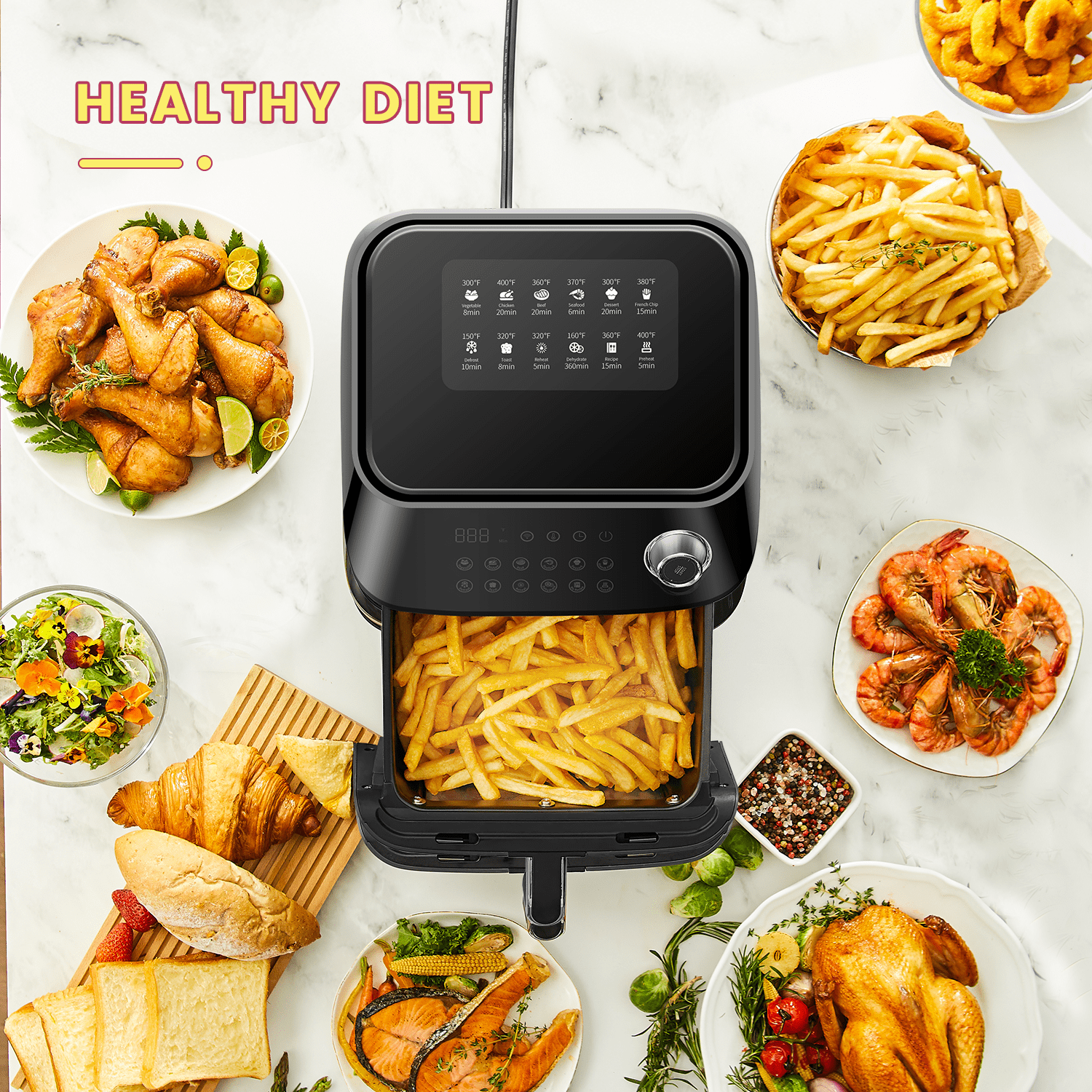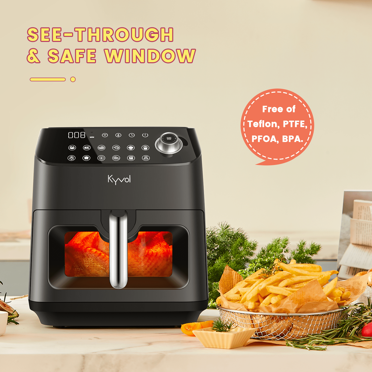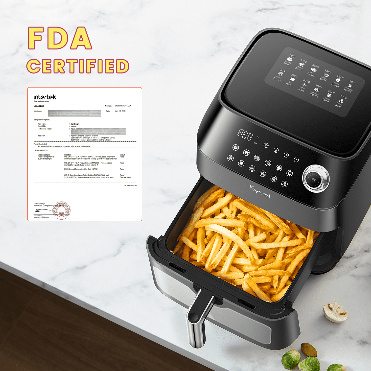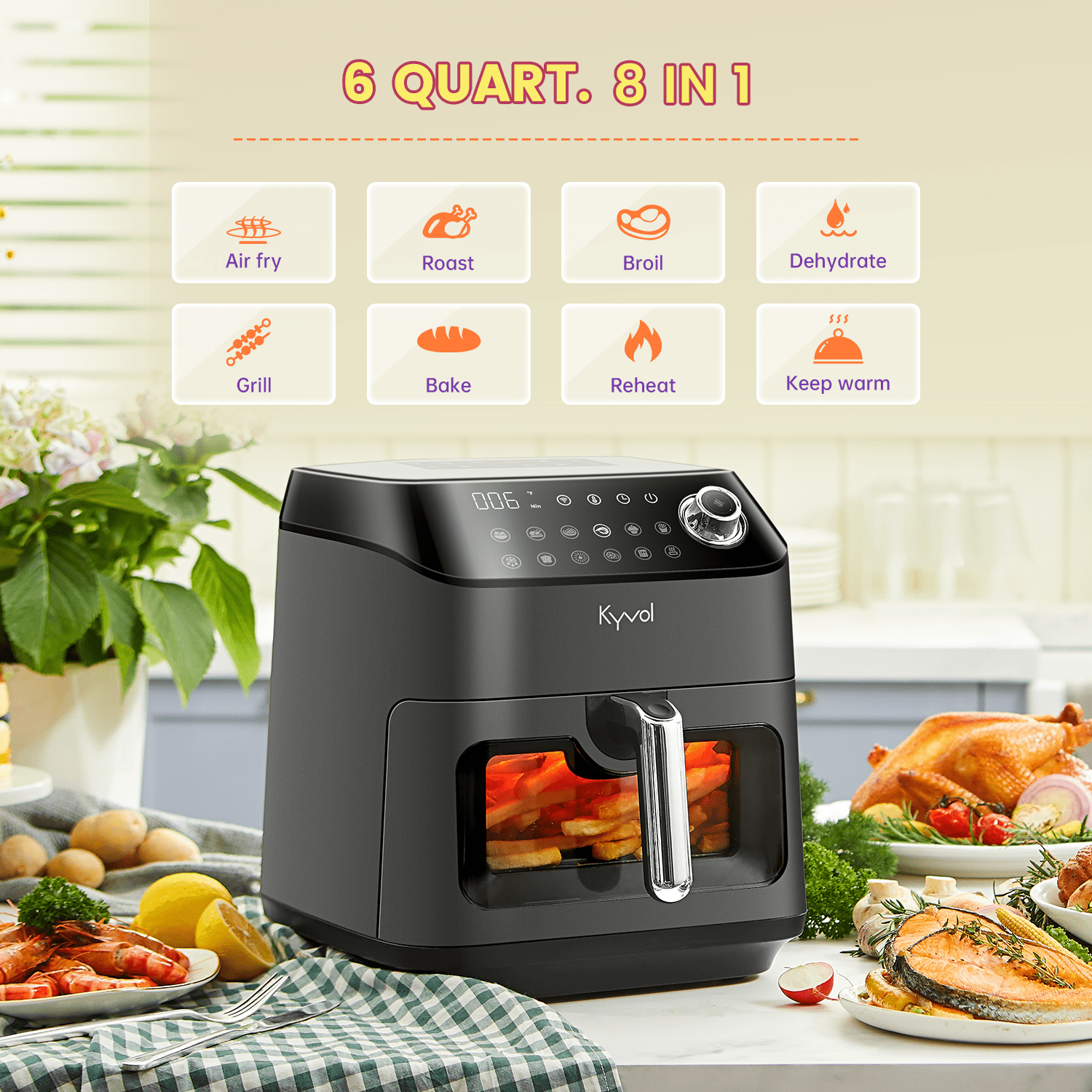 Kyvol Smart Wi-Fi Air Fryer. AF600 Air Fryer. 6 Quart. 12 Presets Recipe