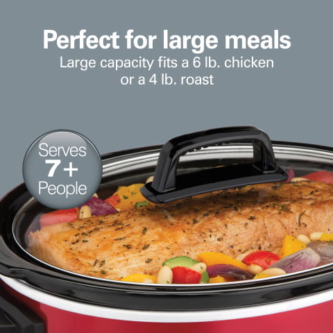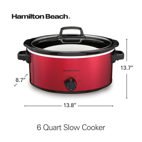 Hamilton Beach Slow Cooker. Large Capacity. Serves 7+. 6 Quarts. Red. 33666