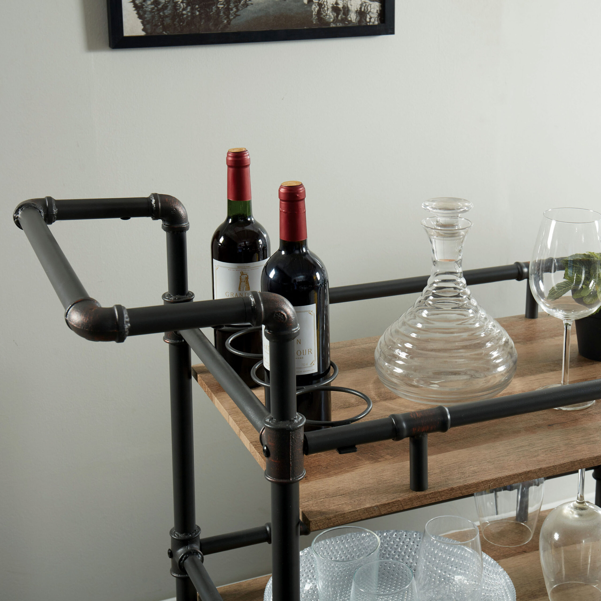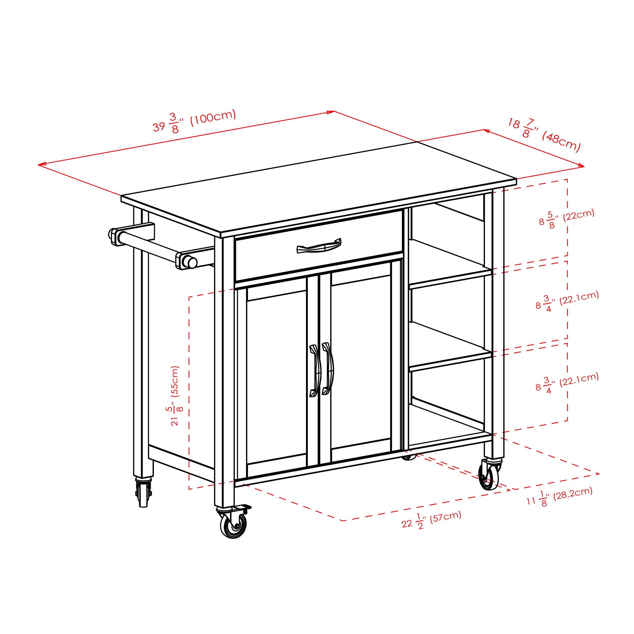 Furniture of America Black Metal Base with Wood Top Rolling Kitchen Cart (18.75-in x 35.63-in x 39.88-in)