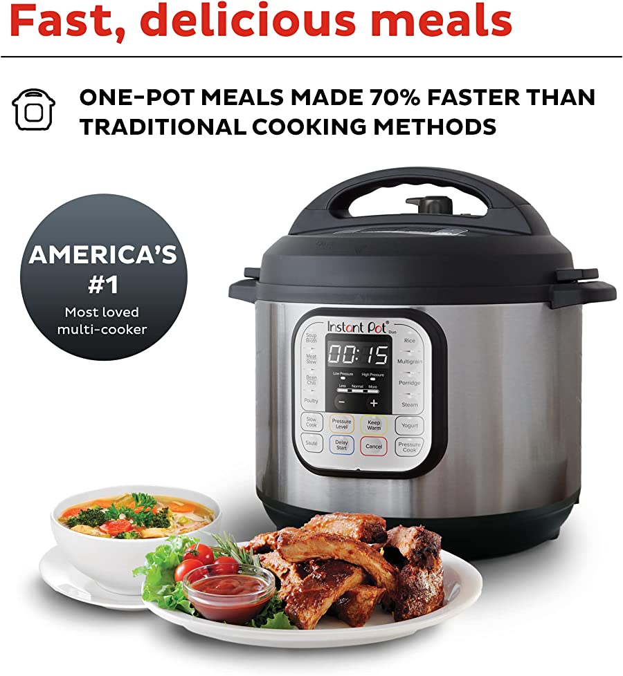Instant Pot Duo 7-in-1 Electric Pressure Cooker. Slow Cooker. Rice Cooker. Steamer. Sauté. Yogurt Maker. Warmer & Sterilizer. Stainless Steel. 6 Quart