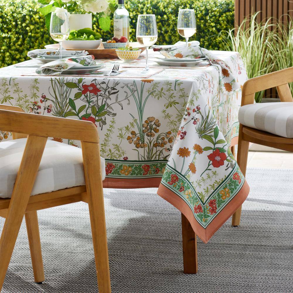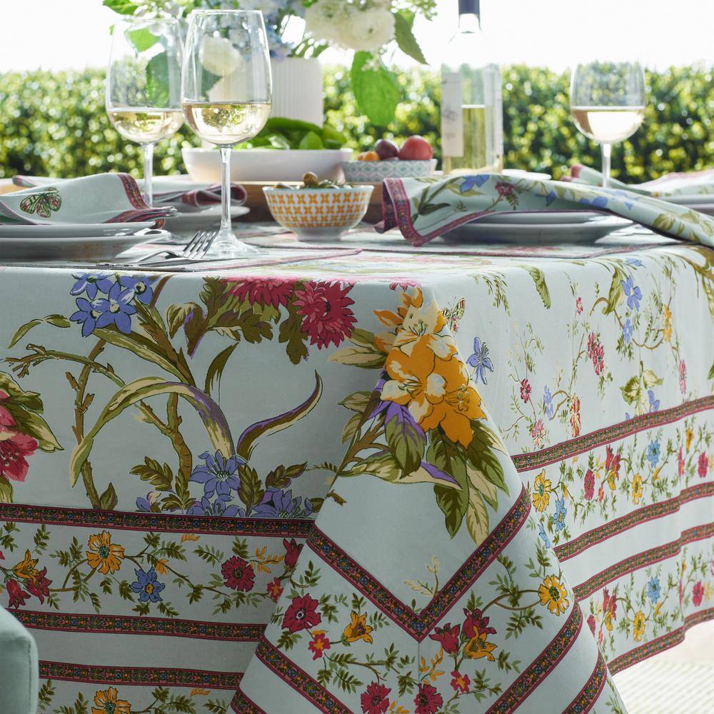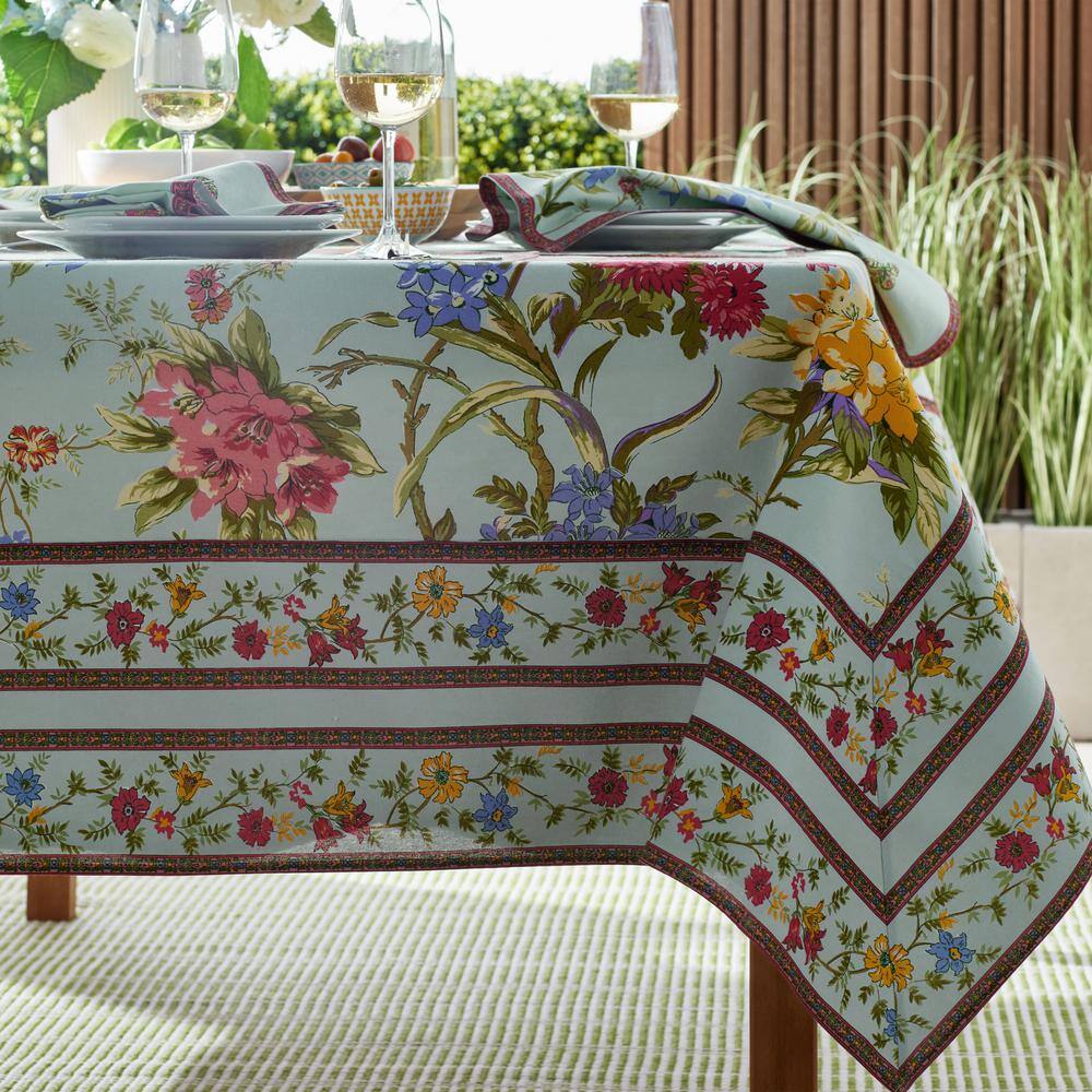 The Company Store Floral Vine 70 in. x 90 in. Aqua Multi Cotton Tablecloth