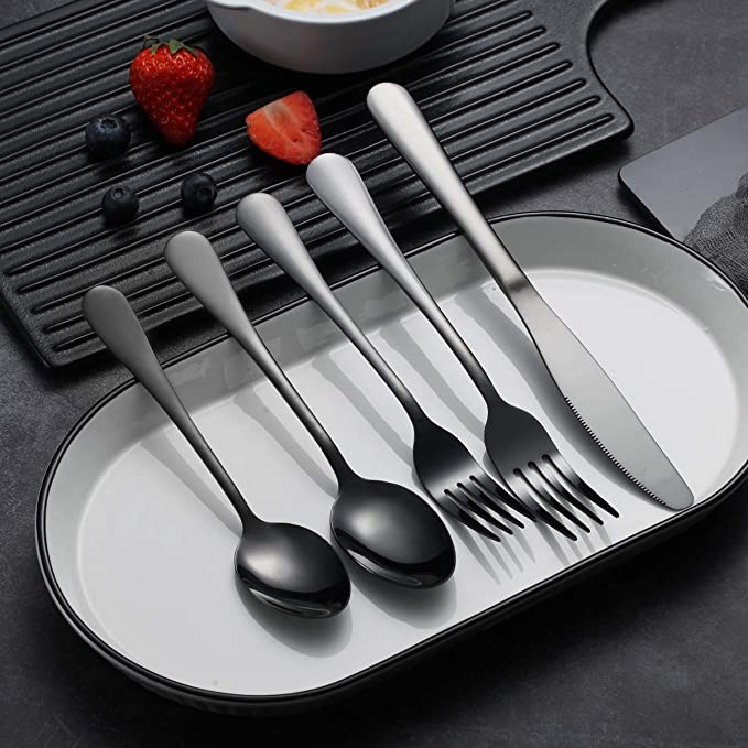 ReaNea 20 Piece Black Silverware Set Stainless Steel Titanium Black Plating Flatware Set.Spoons and Forks Cutlery Set Service for 4