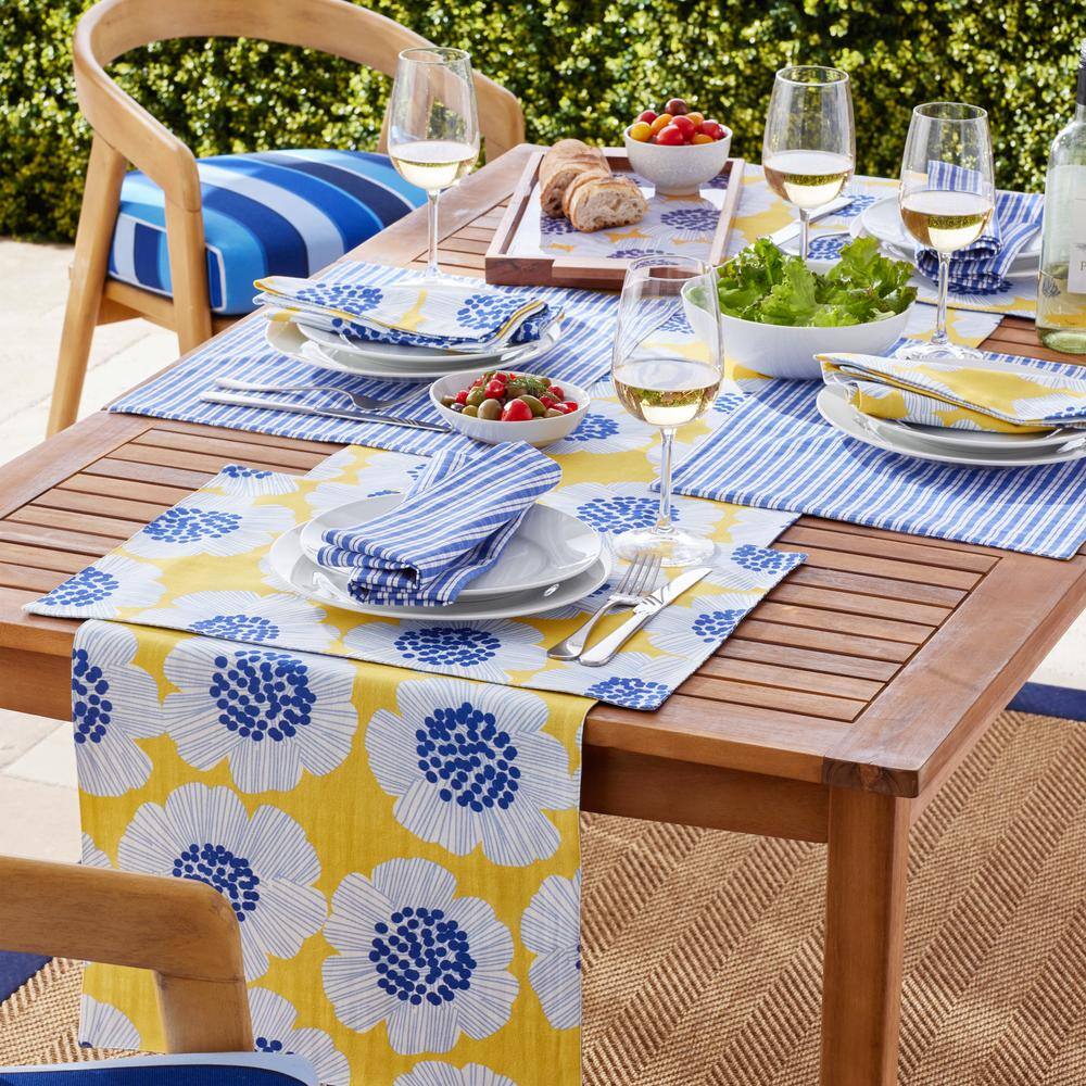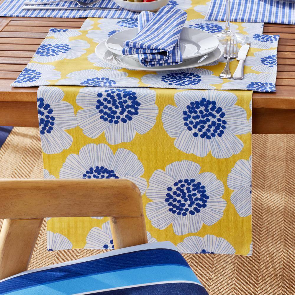 The Company Store Art Deco Floral 16 in. X 90 in. Yellow Multi 01 Geometric Cotton Table Runner