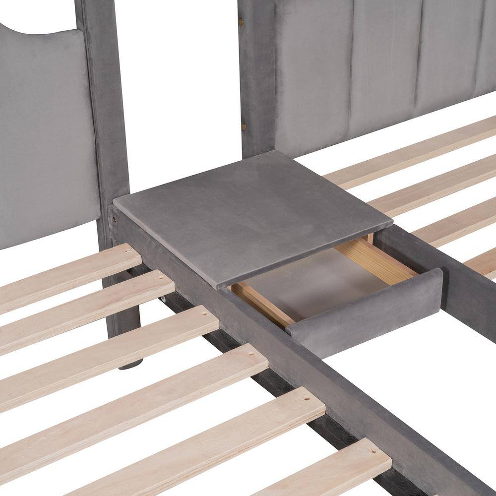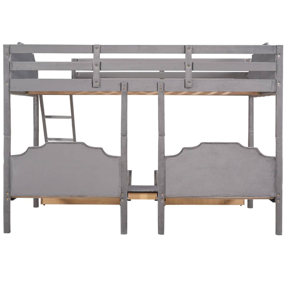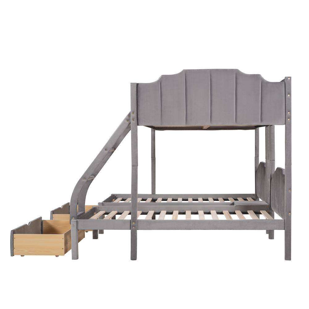Harper & Bright Designs Gray Full Over Twin and Twin Velvet Bunk Bed with 3-Drawers