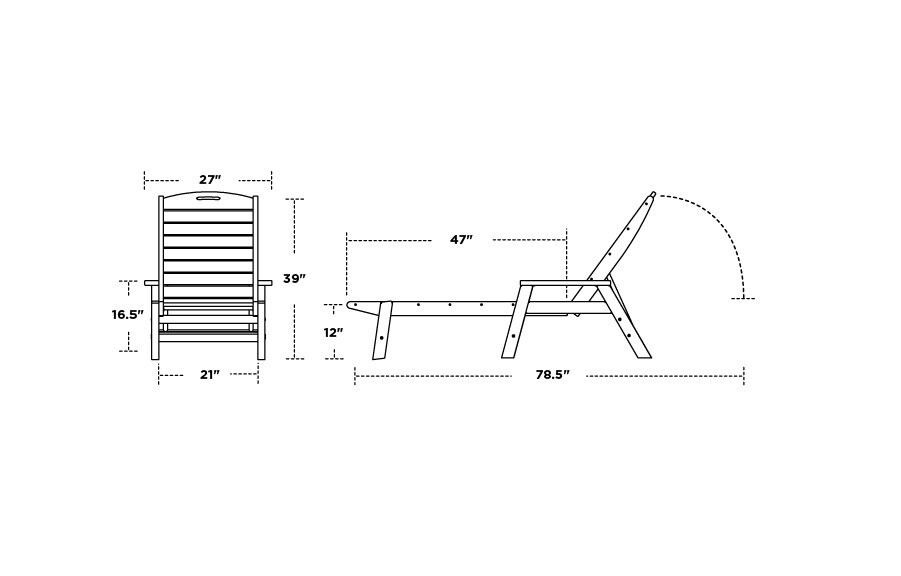 POLYWOOD Nautical Stackable Slate Grey Plastic Frame Stationary Chaise Lounge Chair(s) with Slat Seat