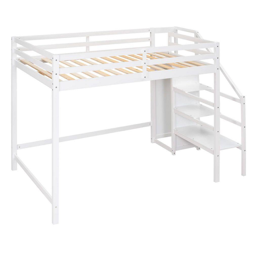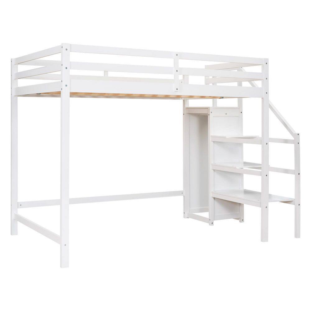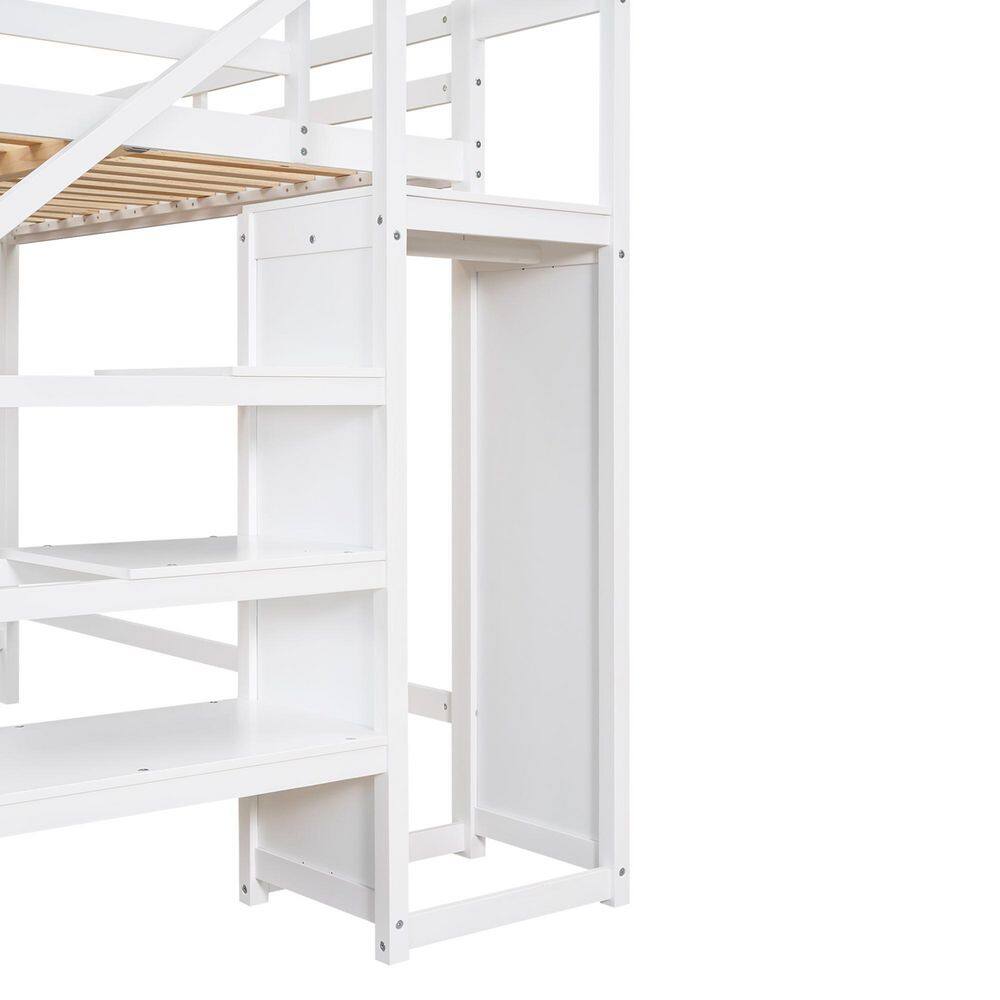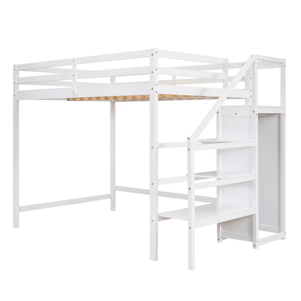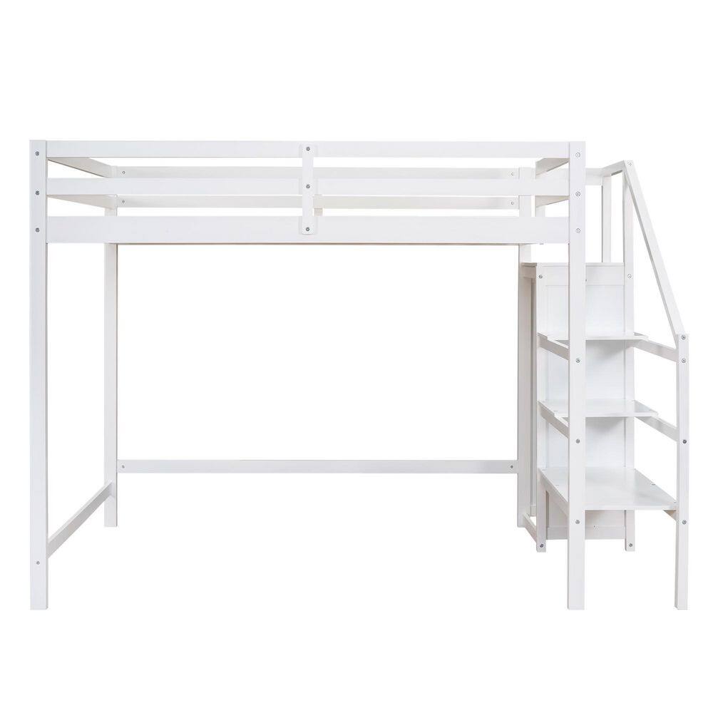 Harper & Bright Designs White Twin Size Wooden Loft Bed with Built in Desk and Staircase