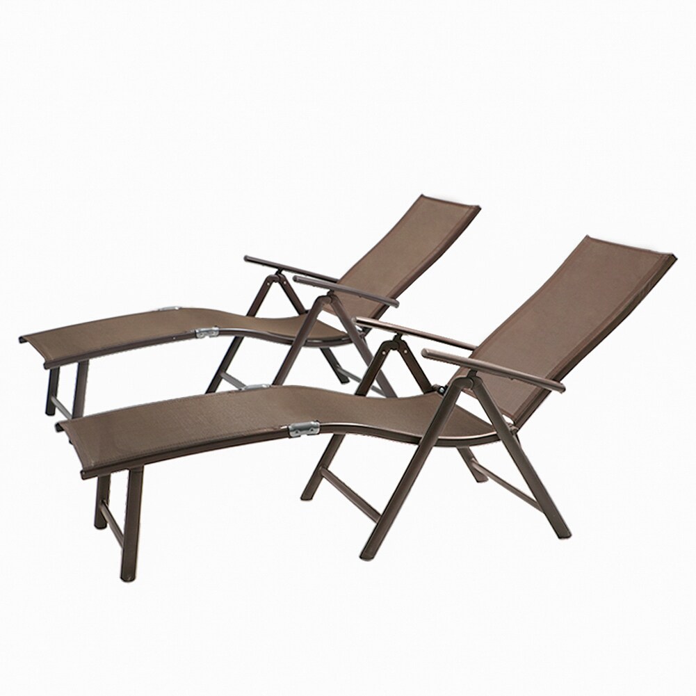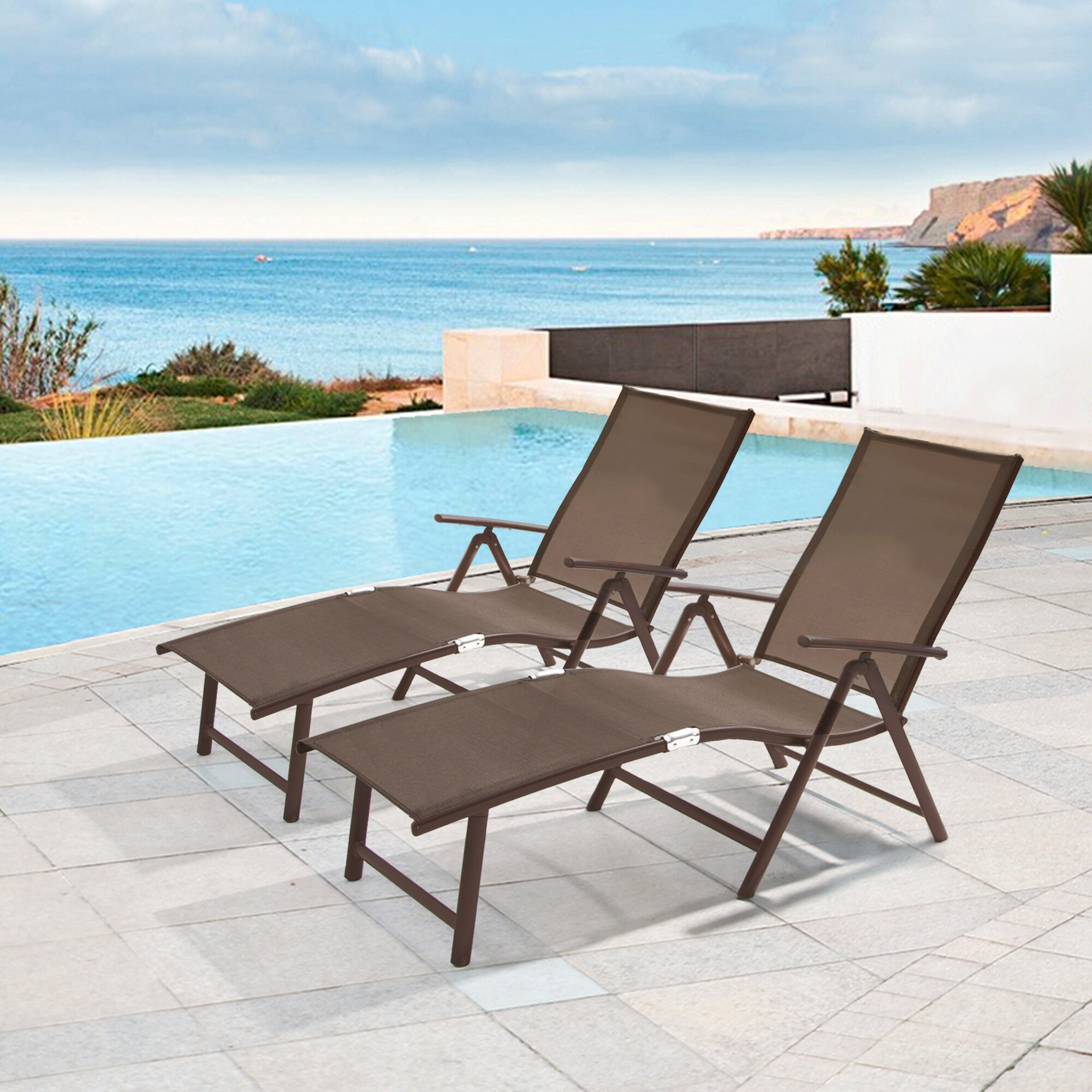 Crestlive Products Patio chaise lounge Set of 2 Aluminum Frame In Classic Brown