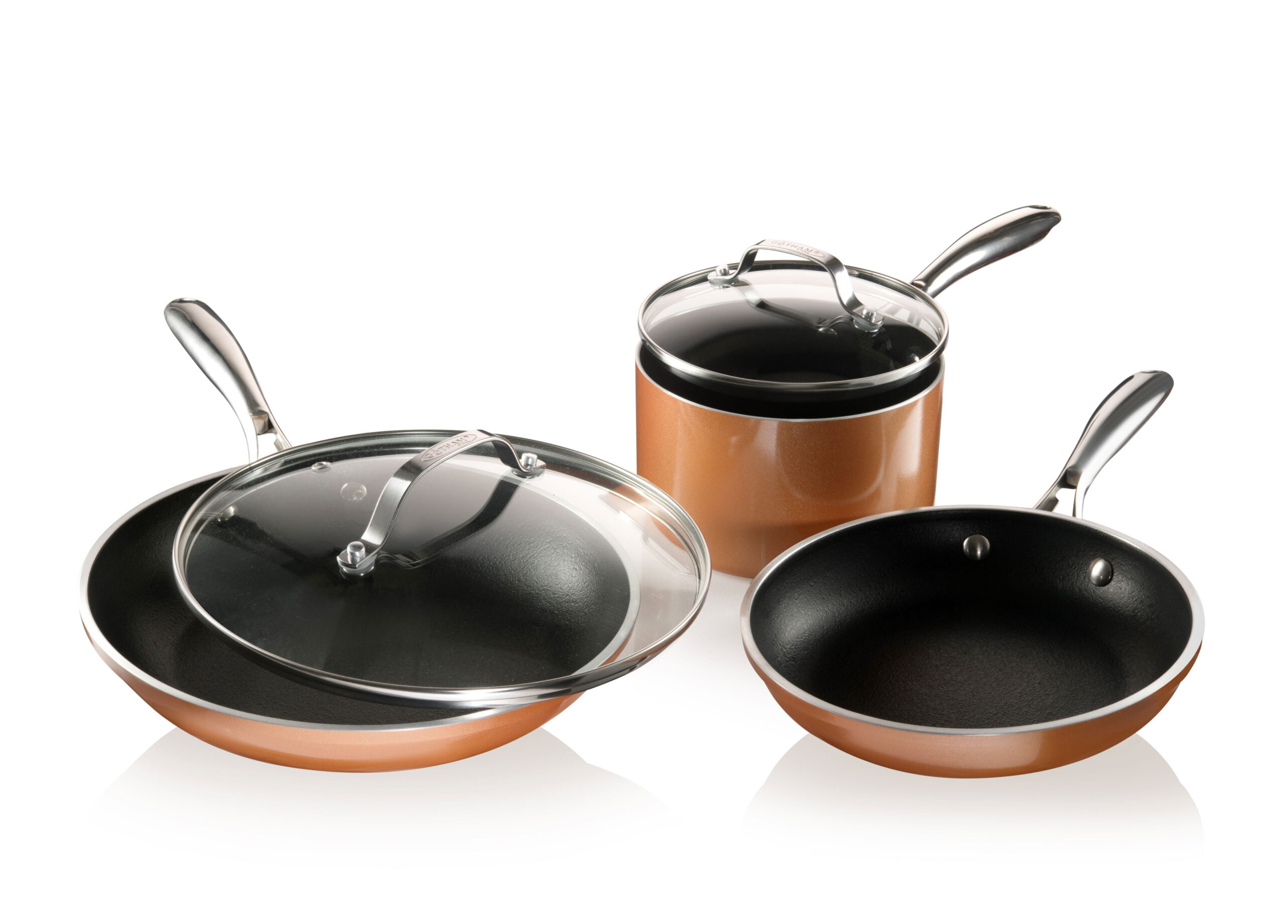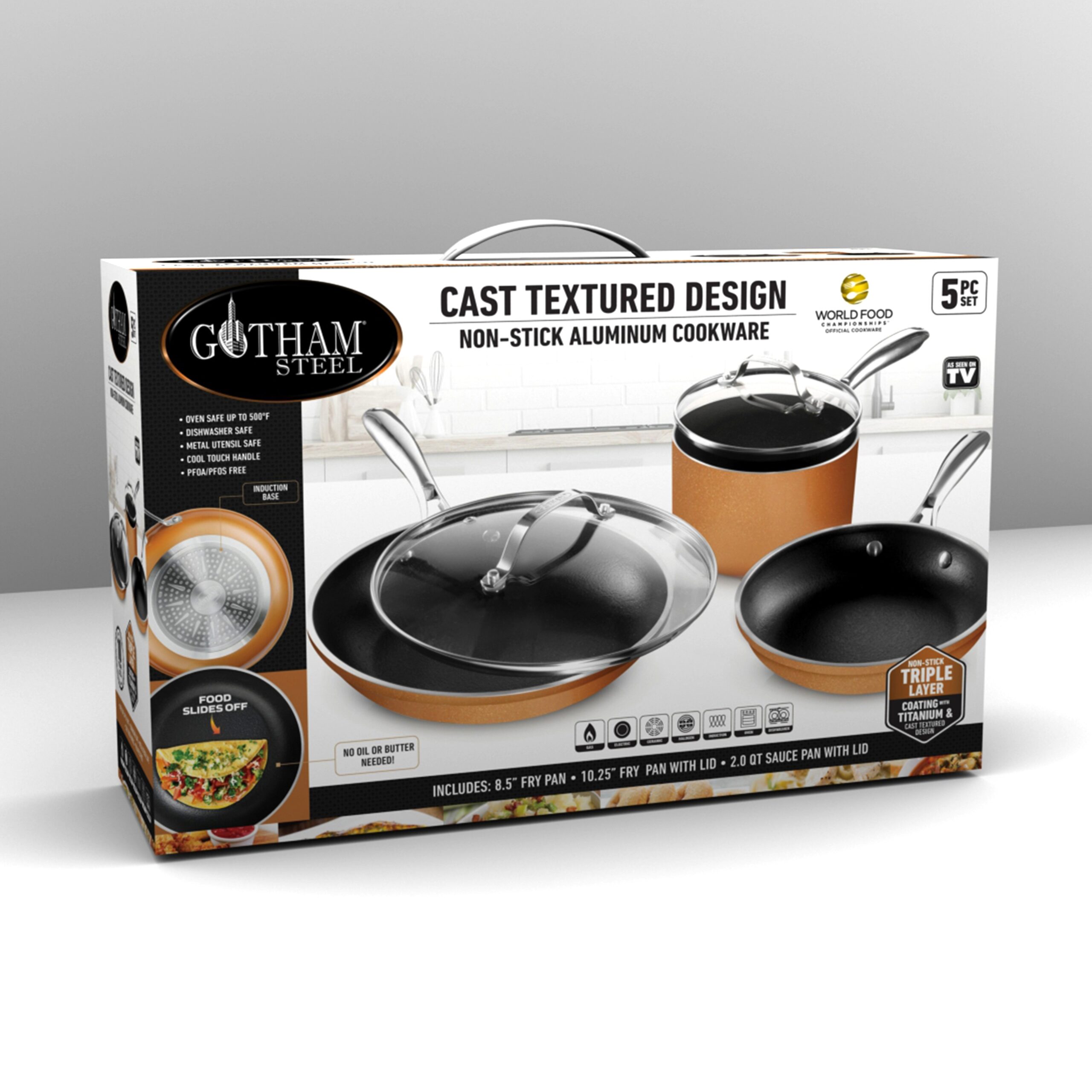 Gotham Steel Copper Cast 5 Piece Cookware Set Non-Stick Pots and Pans Set Dishwasher & Oven Safe