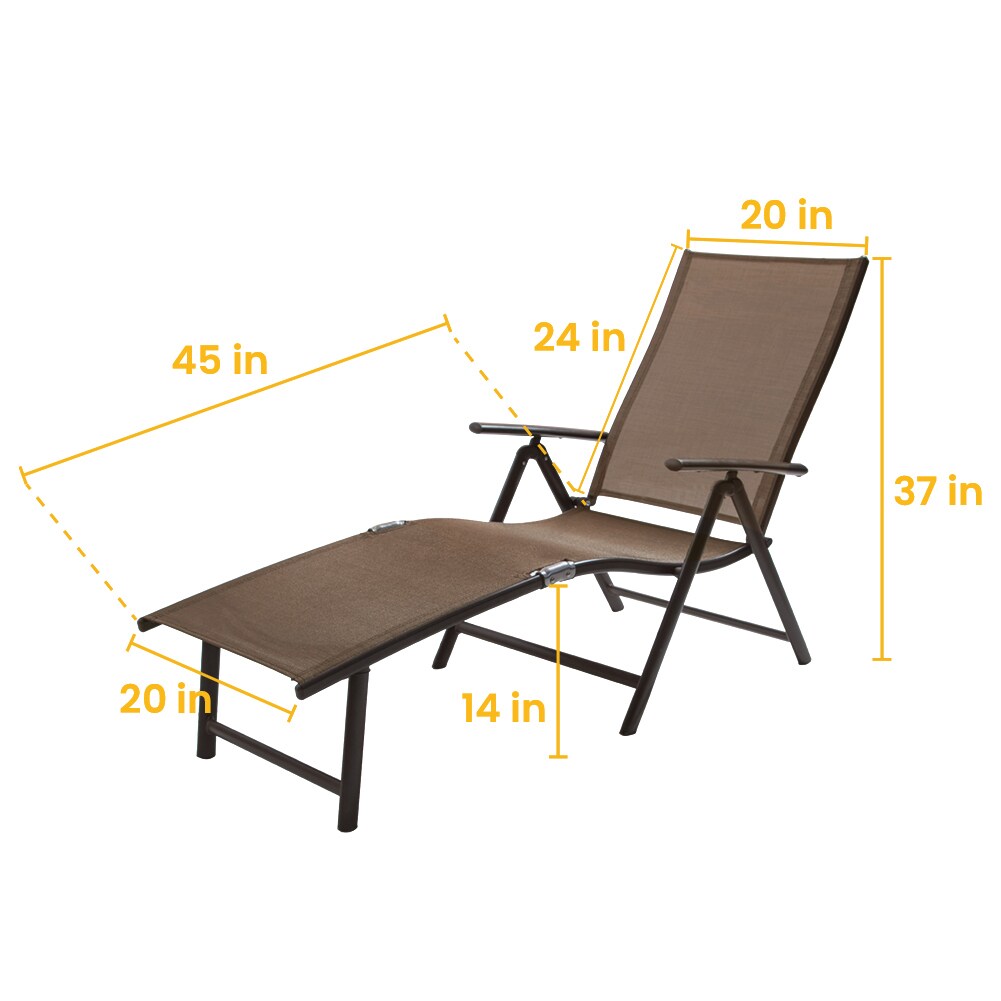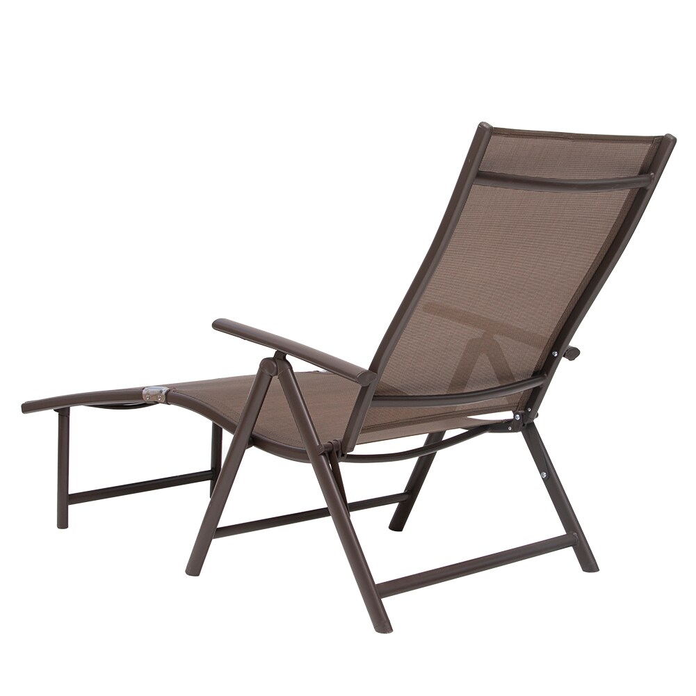 Crestlive Products Patio chaise lounge Set of 2 Aluminum Frame In Brown Finish Metal Frame Stationary Chaise Lounge Chair(s) with Brown Sling Seat