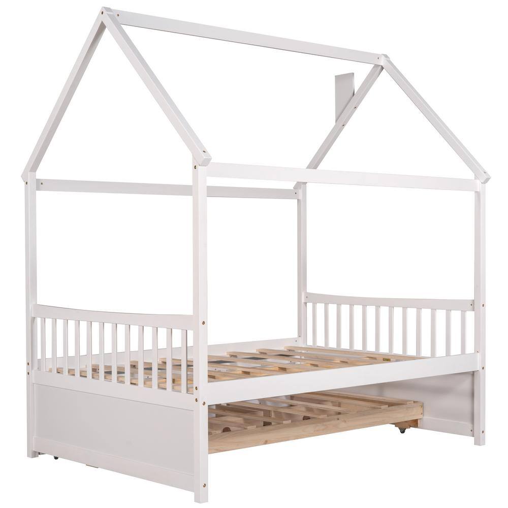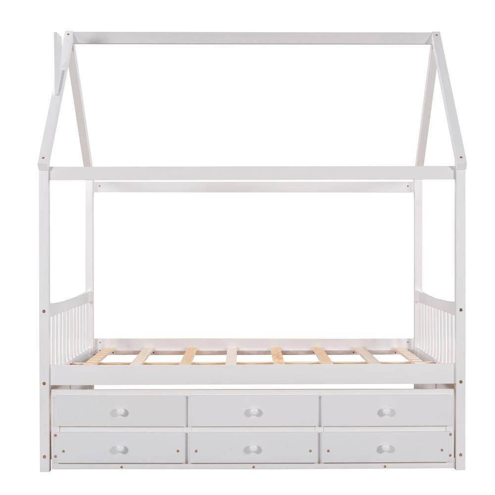 Qualler White Full size Wooden House Bed With Trundle and 3 Storage Drawers