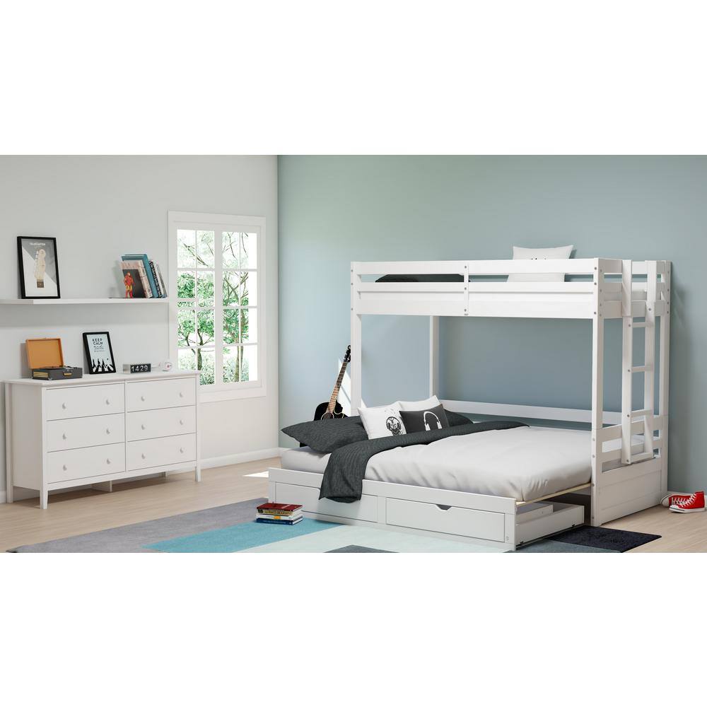 Alaterre Furniture Jasper White Twin to King Extending Day Bed with Bunk Bed and Storage Drawers