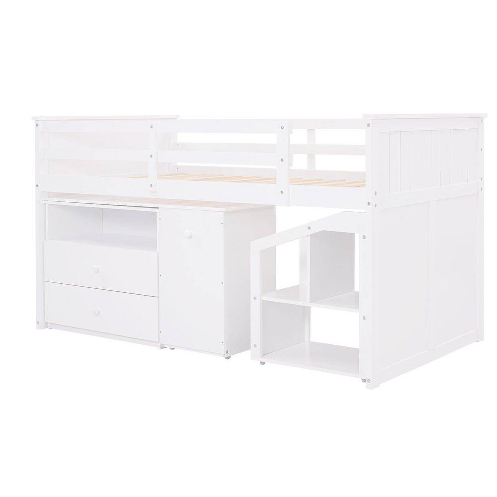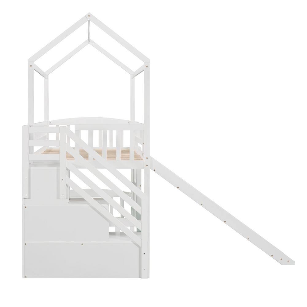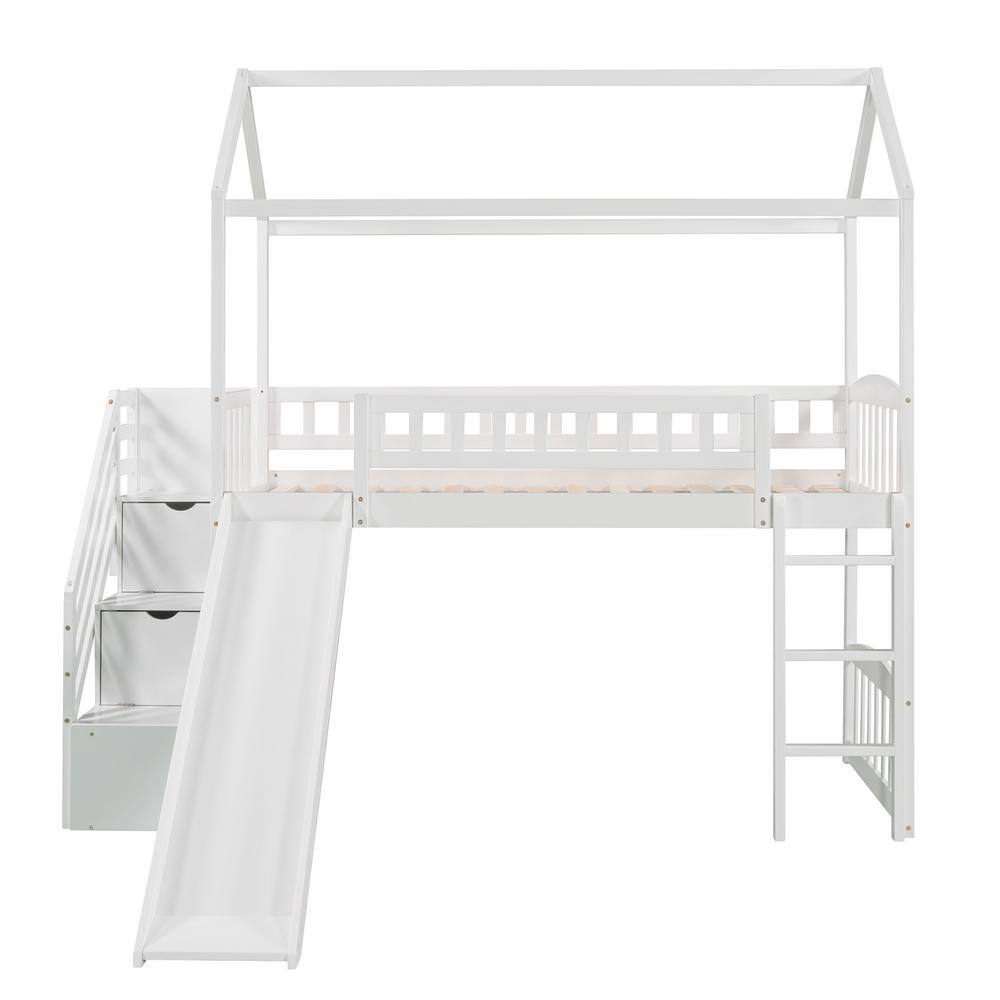Harper & Bright Designs White Twin Size Loft Bed with Two Drawers and House Bed with Slide