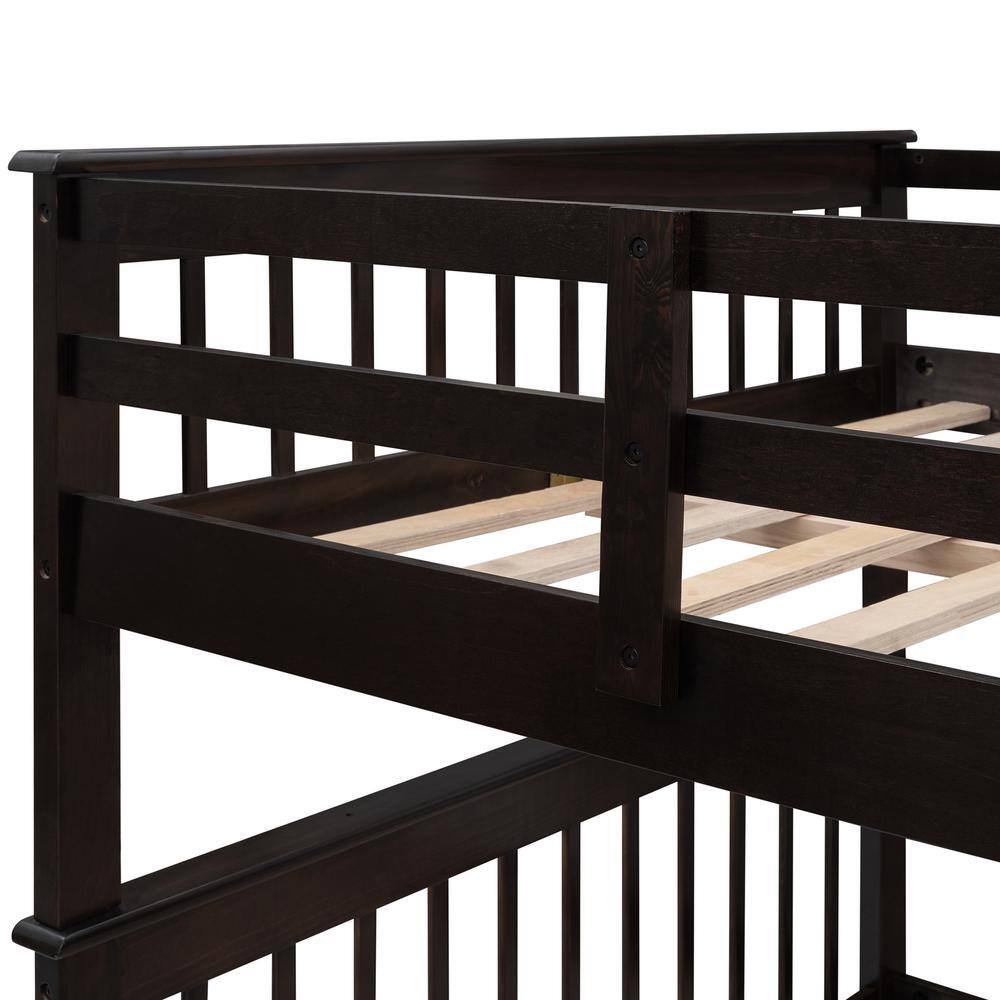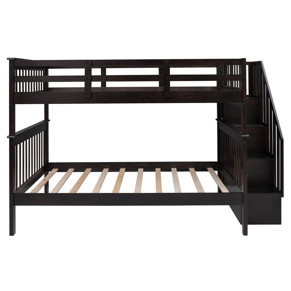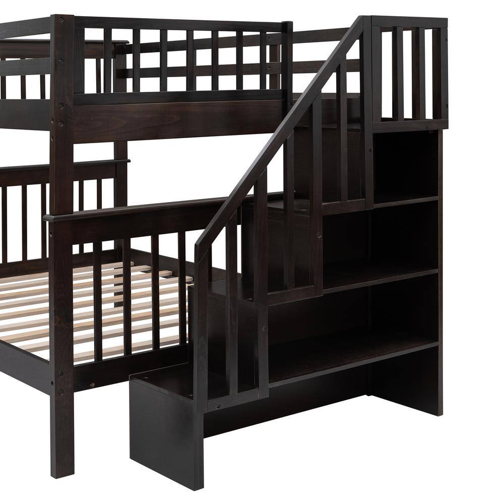 Harper & Bright Designs Dark Brown Full Over Full Wooden Bunk Bed with Storage Stairway