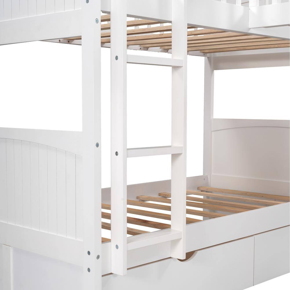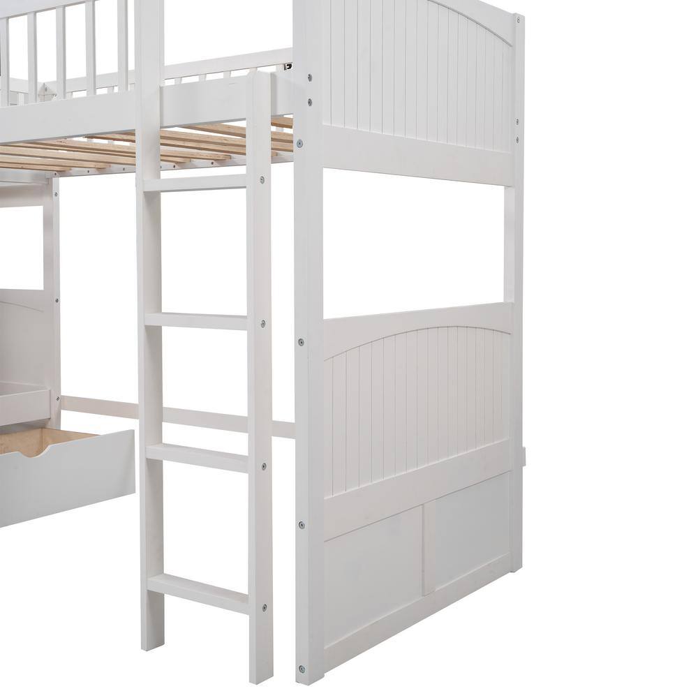 Qualler White Twin Size Bunk Bed with a Loft Bed and Two Drawers