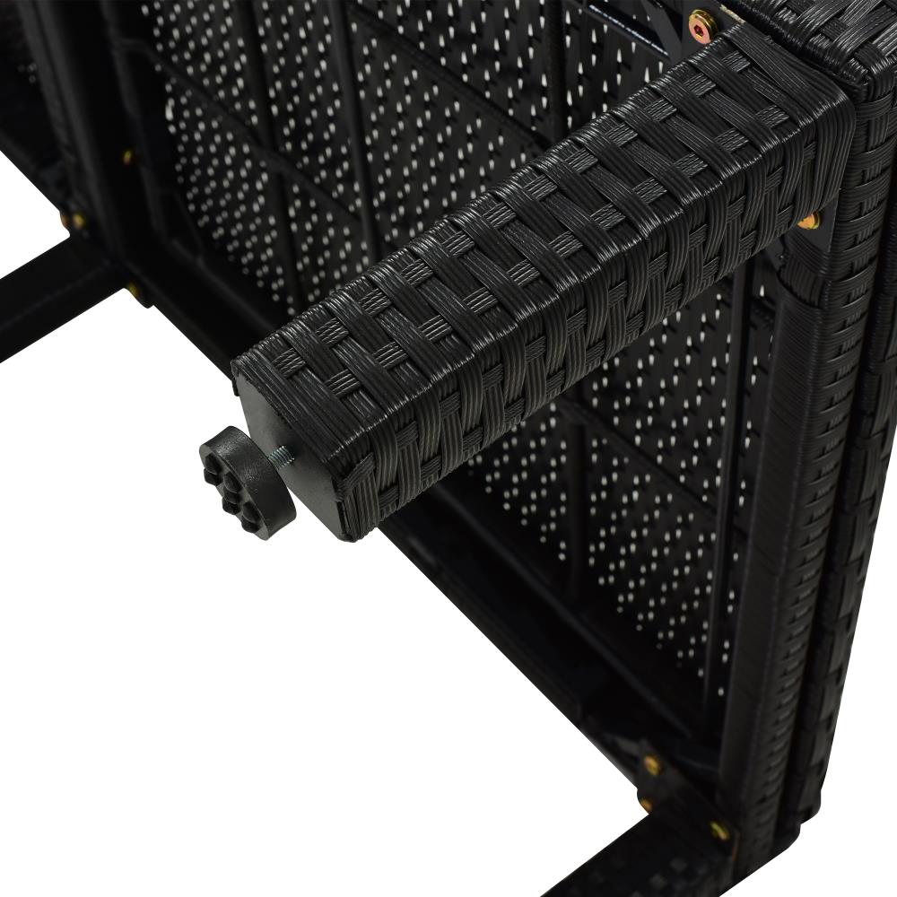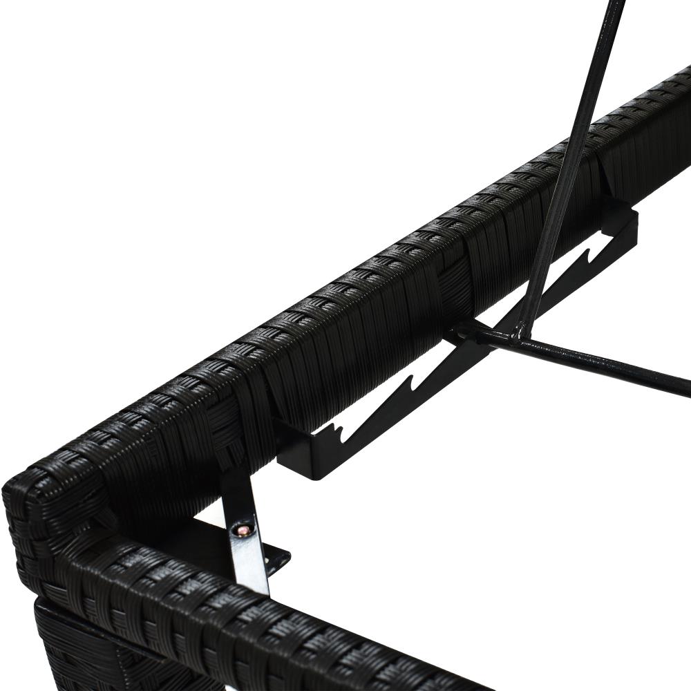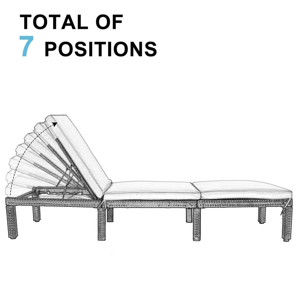 Clihome Chaise Lounge Chair Sun Bed Rattan Black Metal Frame Stationary Chaise Lounge Chair(s) with Blue Cushioned Seat