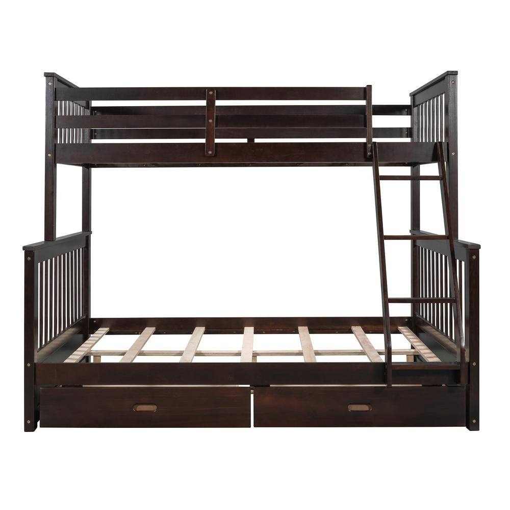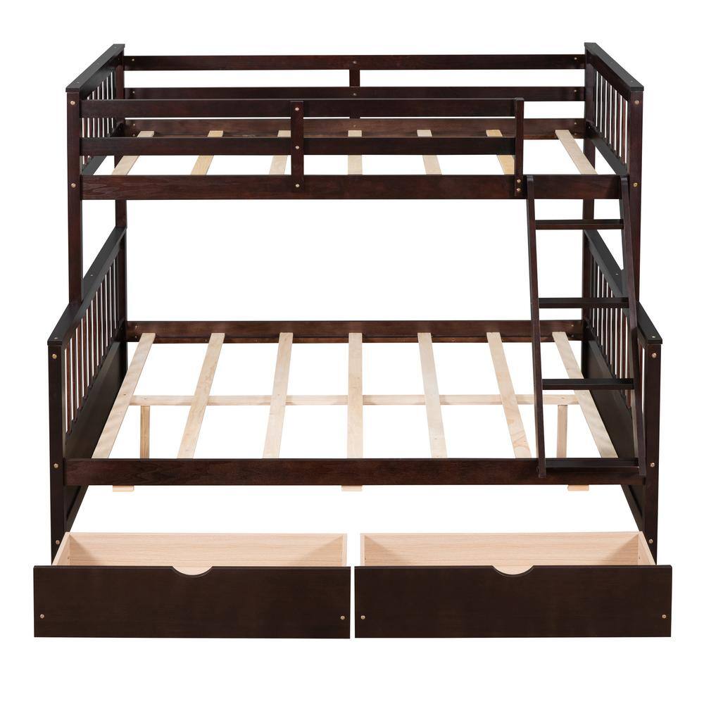 Harper & Bright Designs Espresso Twin Over Full Wood Bunk Bed with 2 Storage Drawers