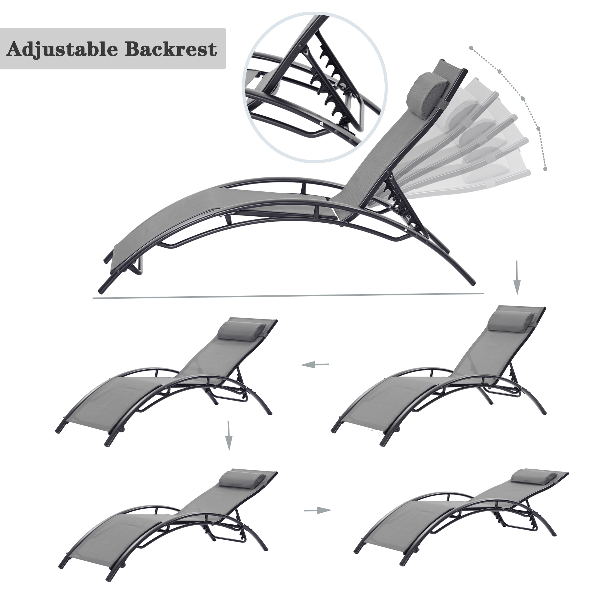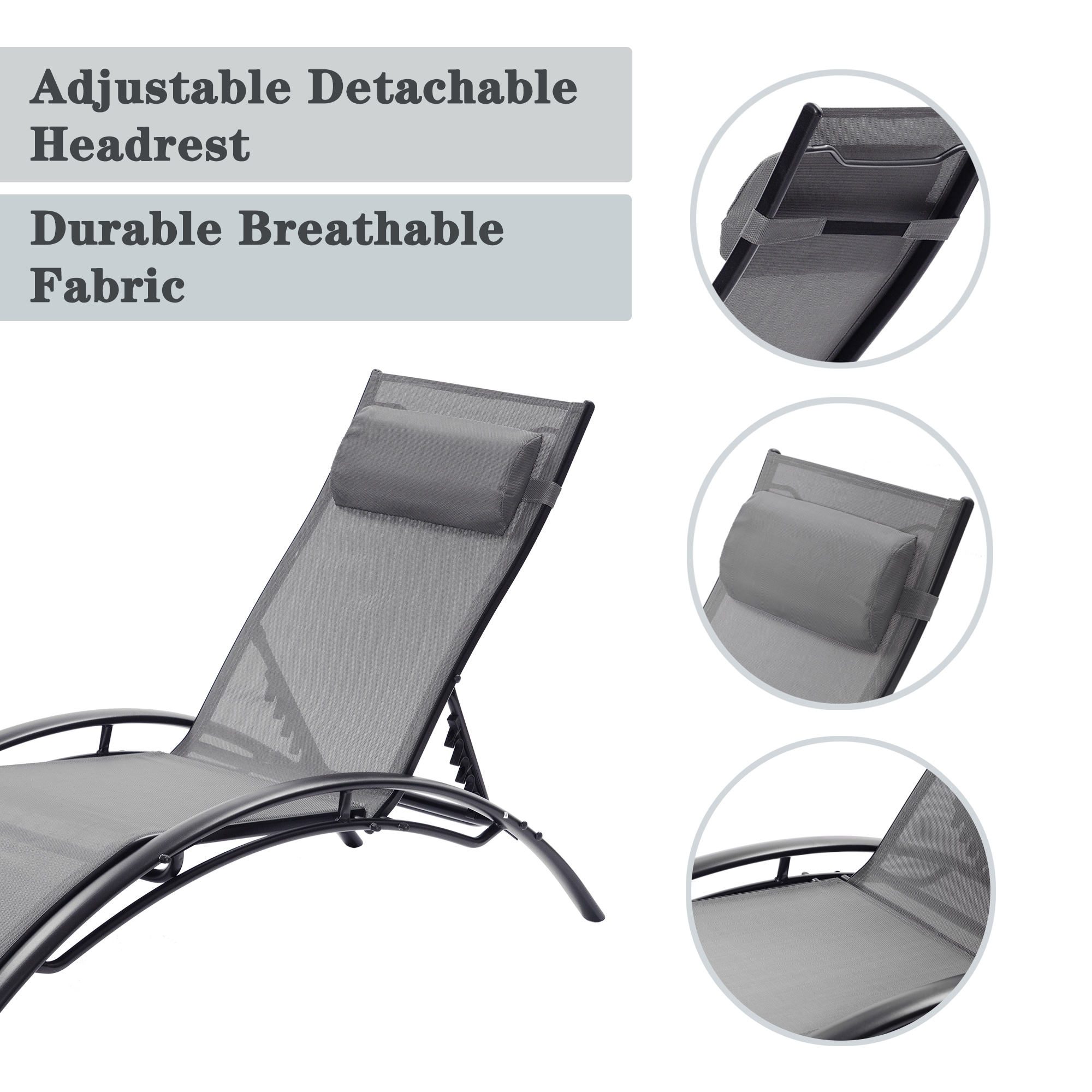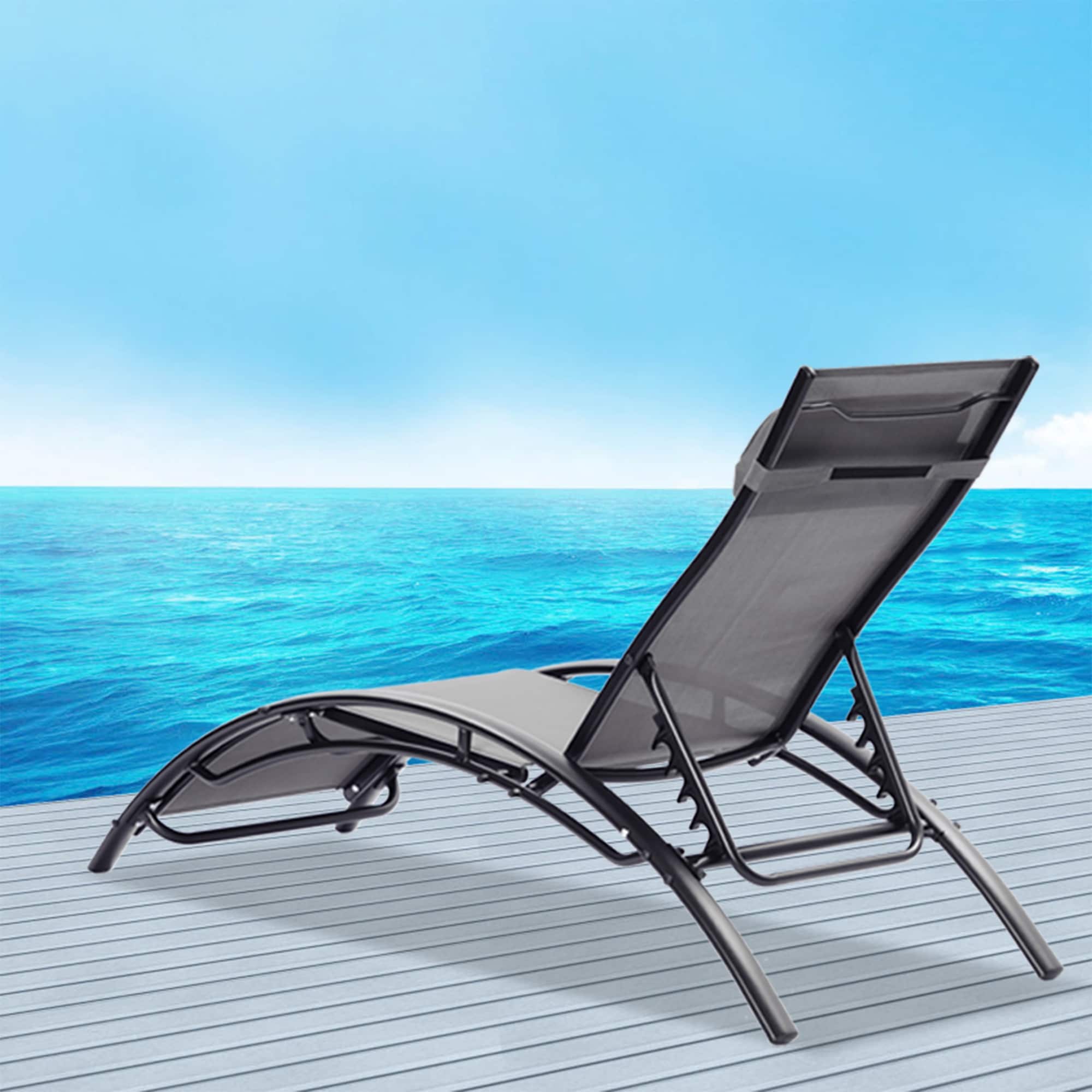 Clihome Patio Chair Set of 2 Metal Frame Stationary Chaise Lounge Chair(s) with Gray Textilene Sling Seat