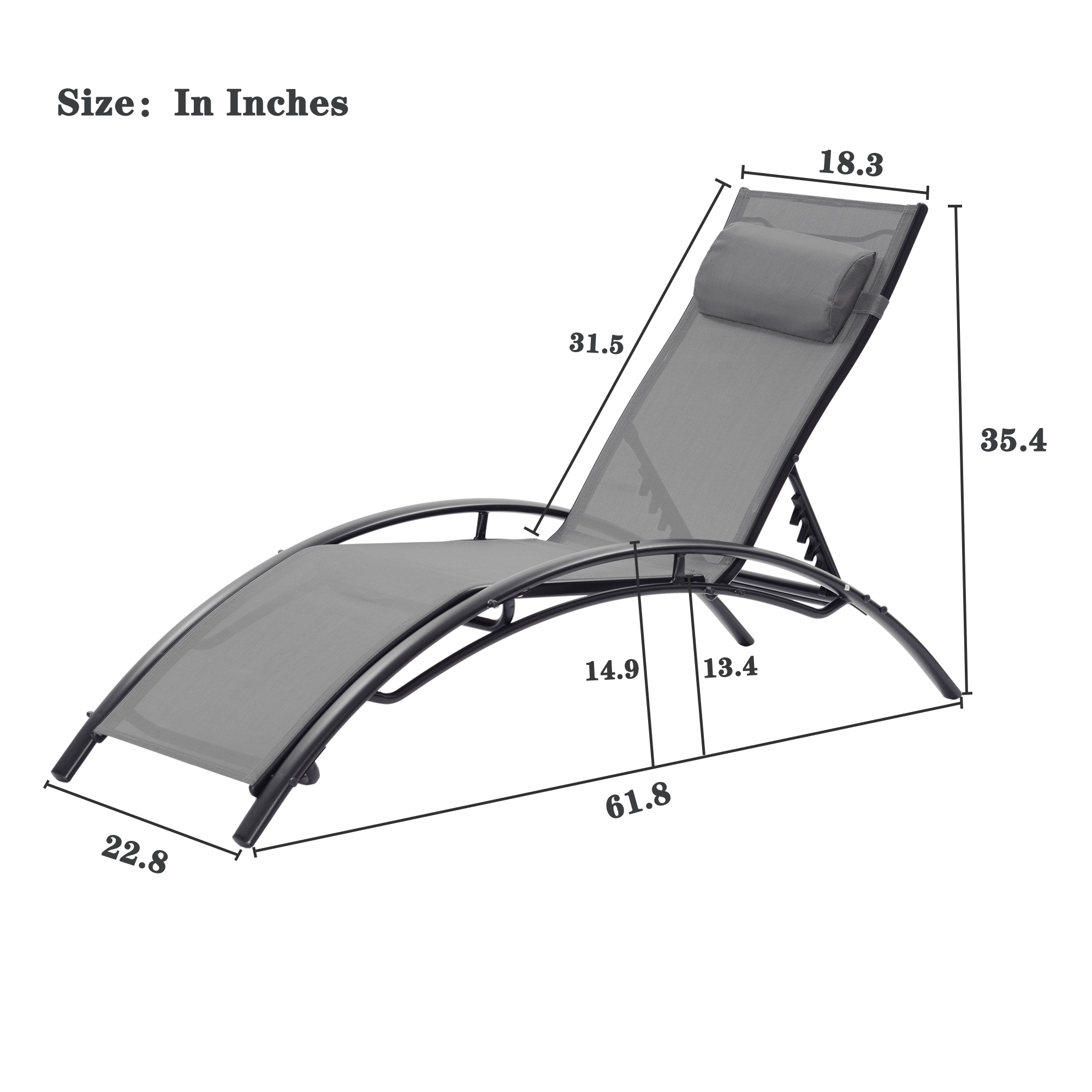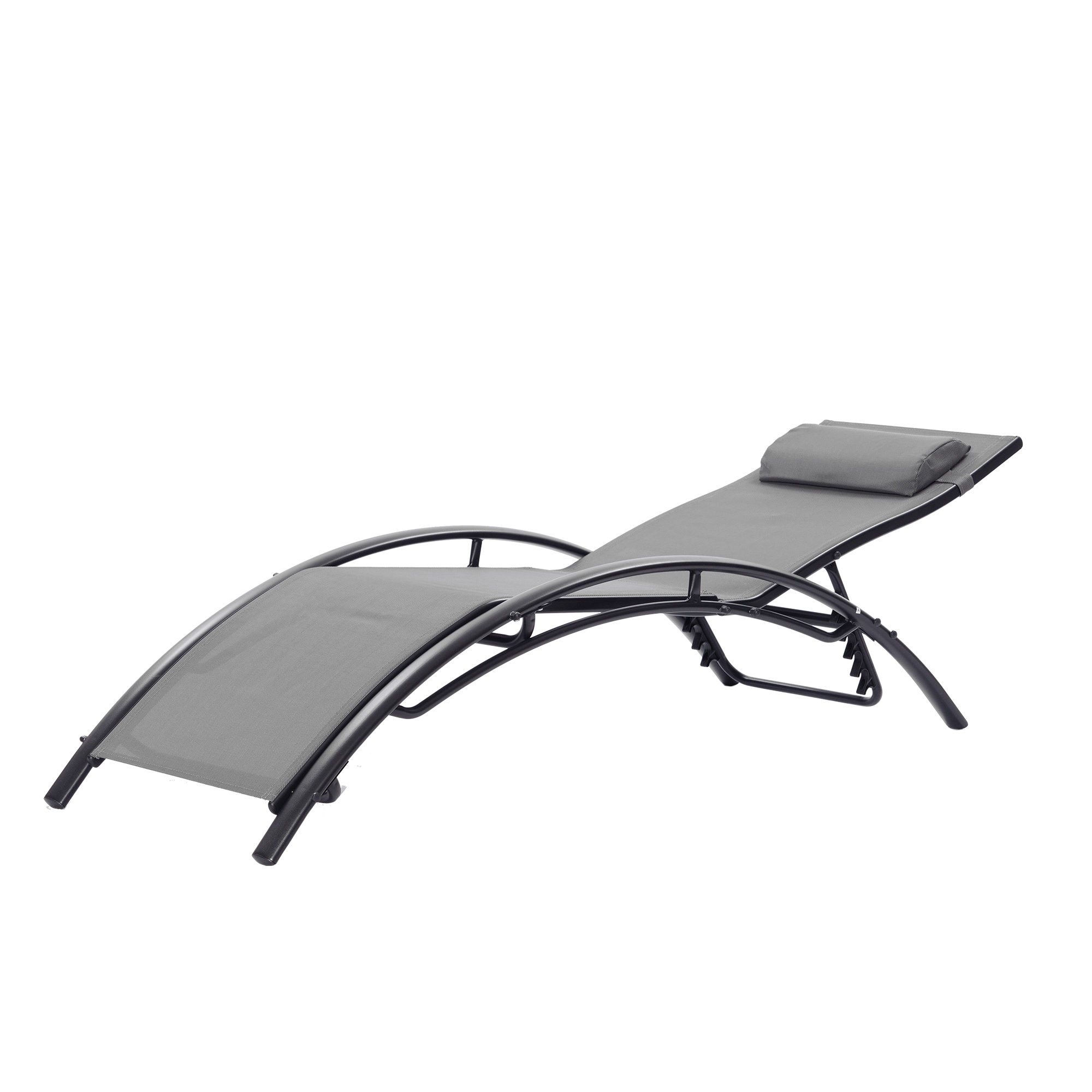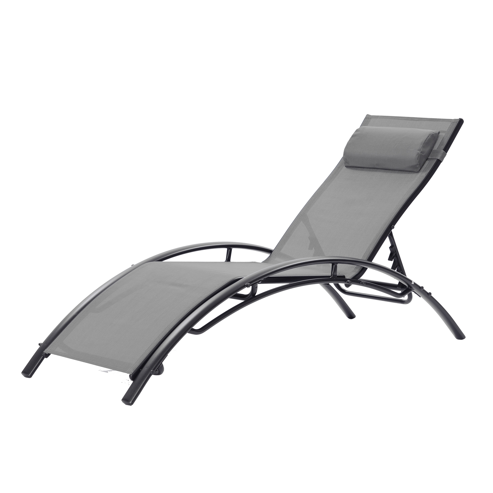 Clihome Patio Chair Set of 2 Metal Frame Stationary Chaise Lounge Chair(s) with Gray Textilene Sling Seat
